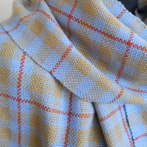 Handwoven Blue Beige plaid Merinowool Scarf