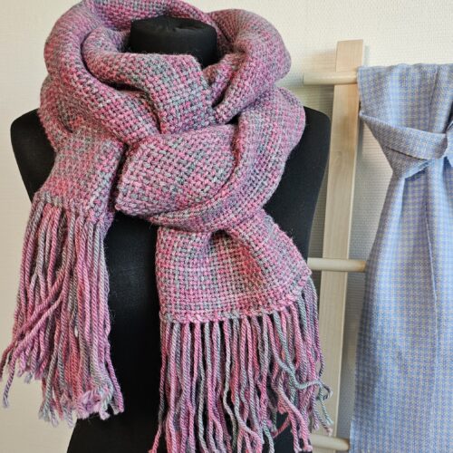 Handwoven white rose wool scarf