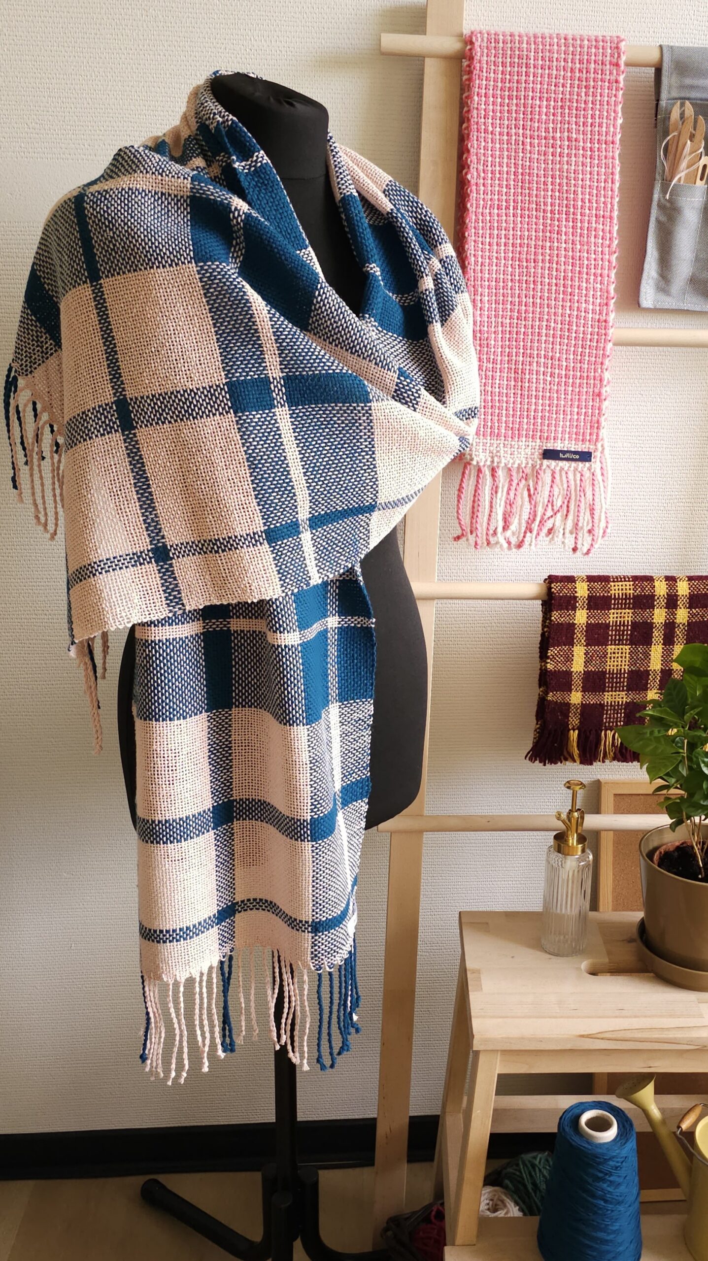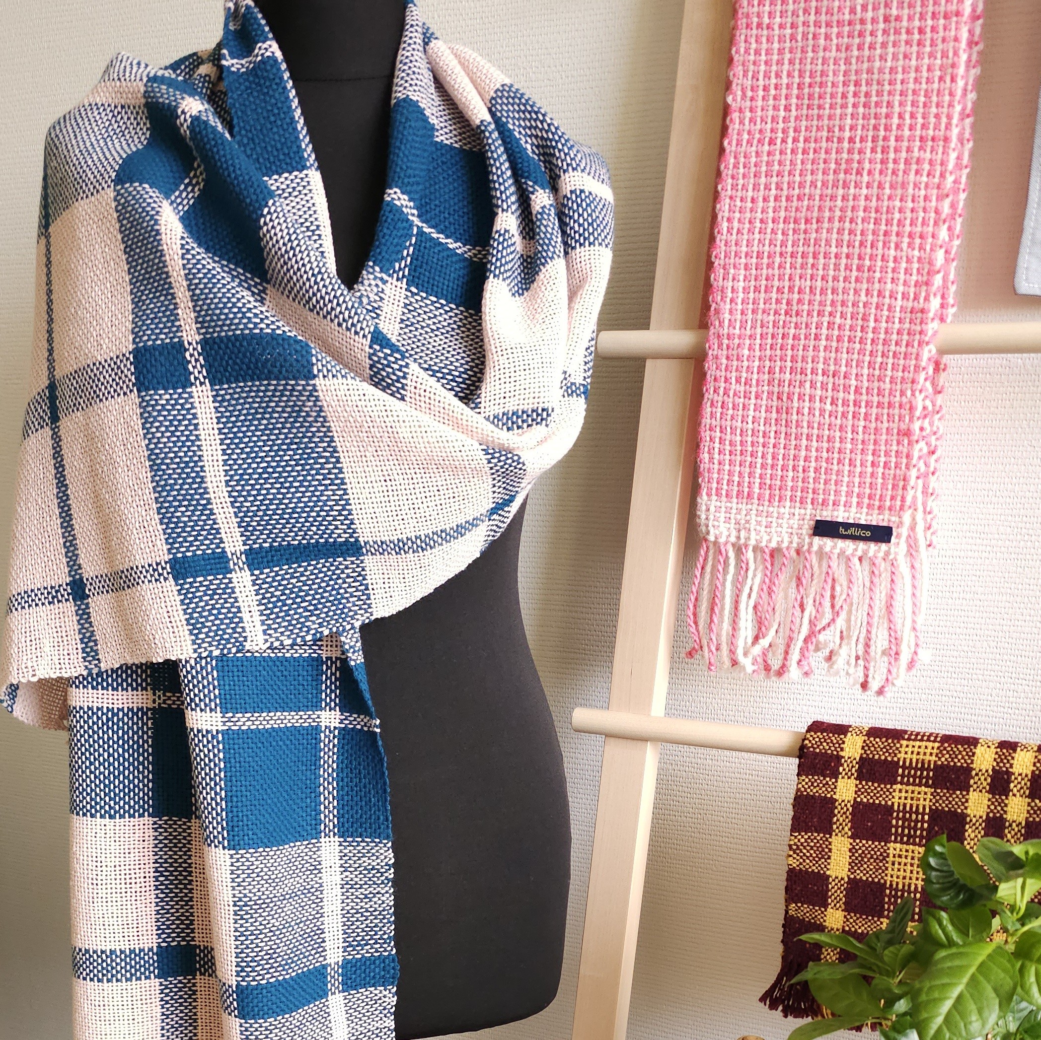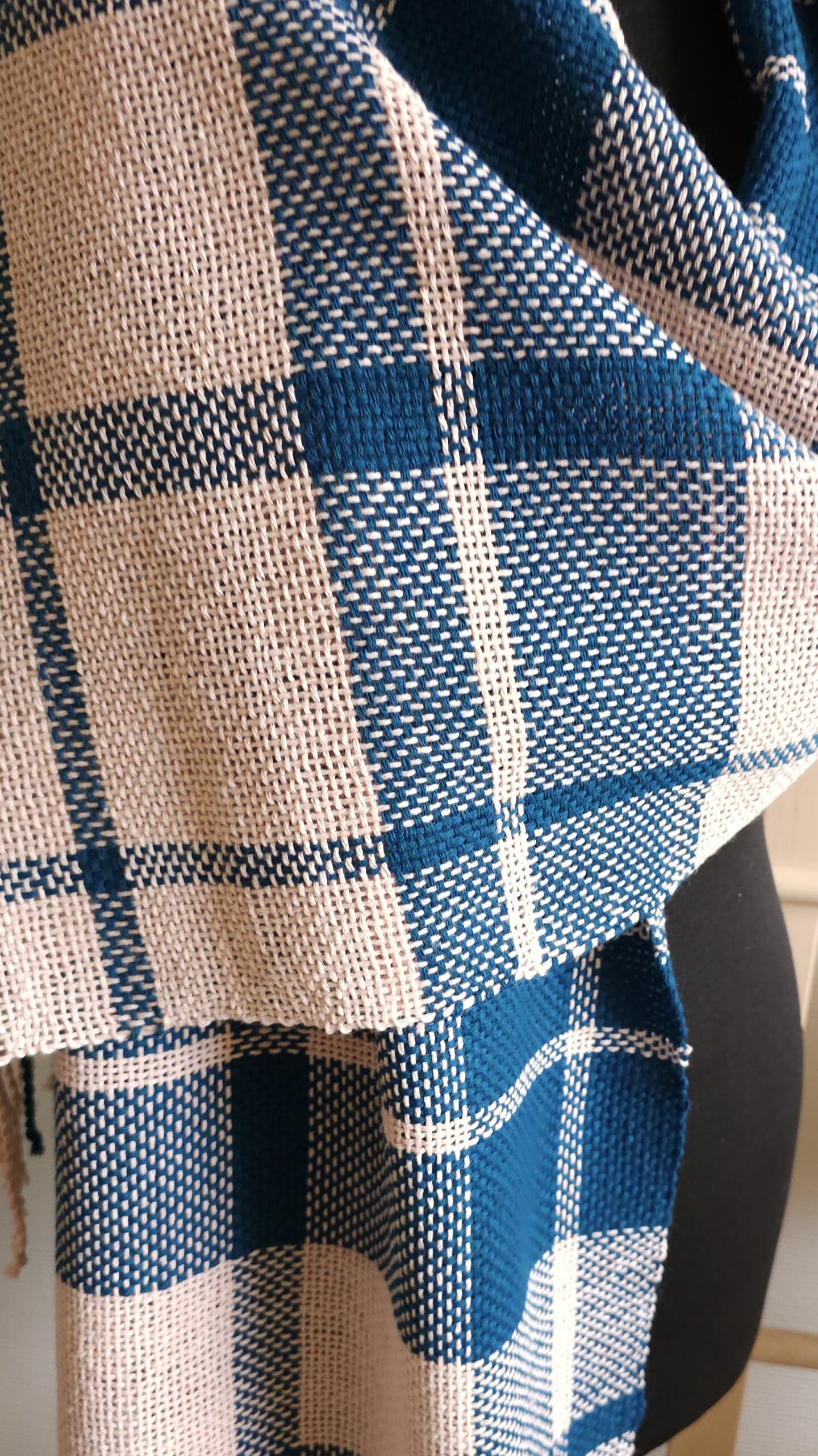 Gorgeous handmade checkered shawl made of high quality 100% cotton yarn, hand woven, size: 184 cm x 40 cm.