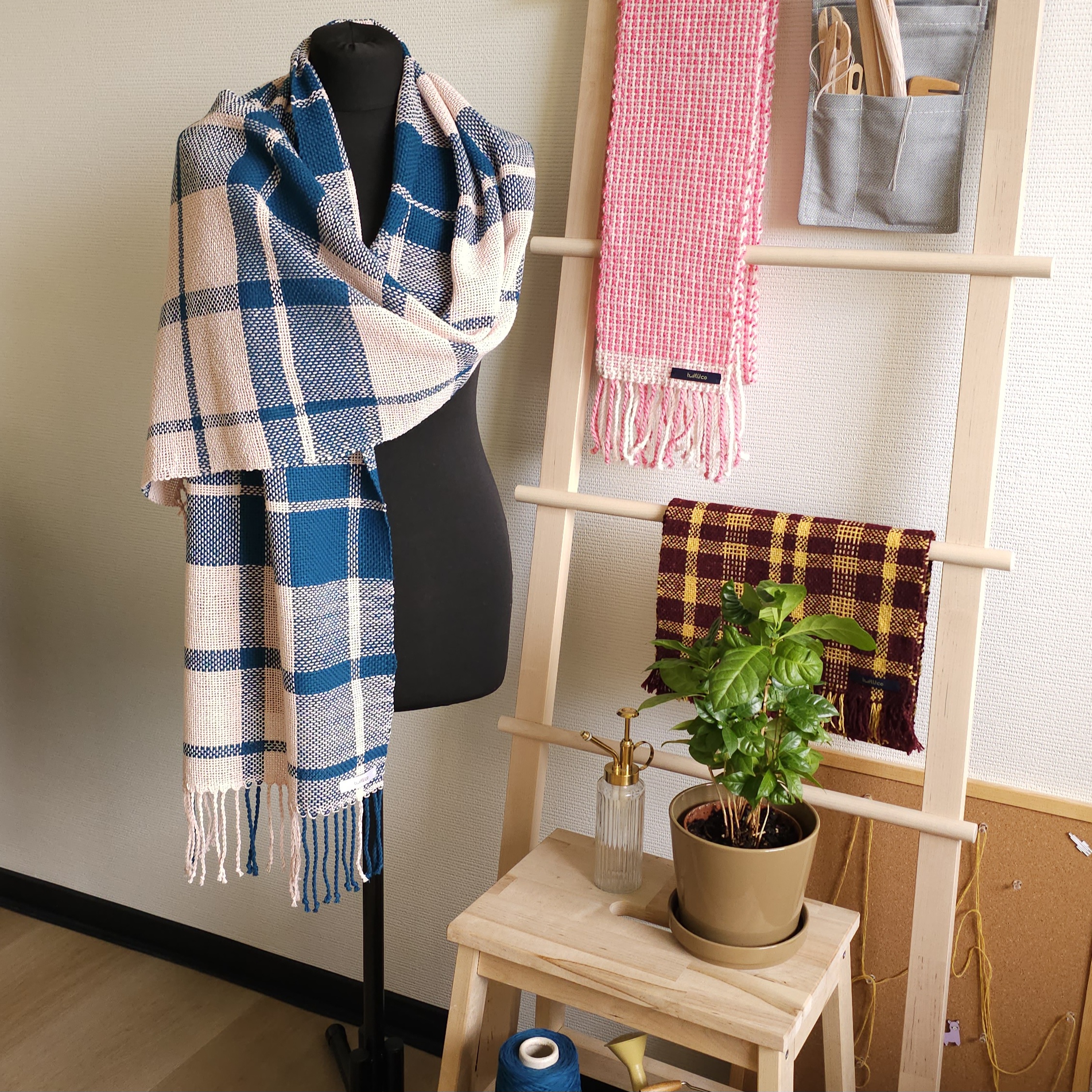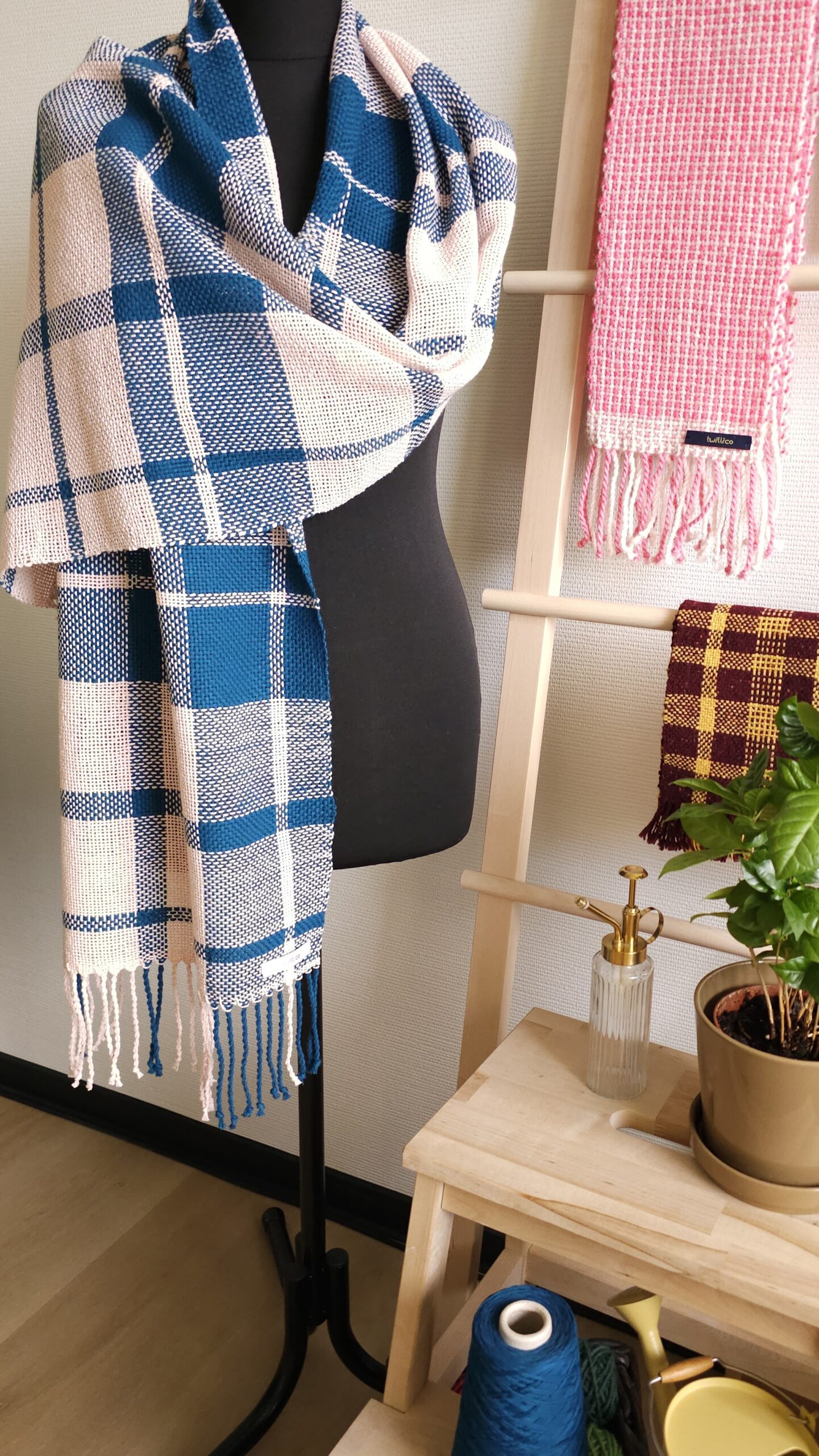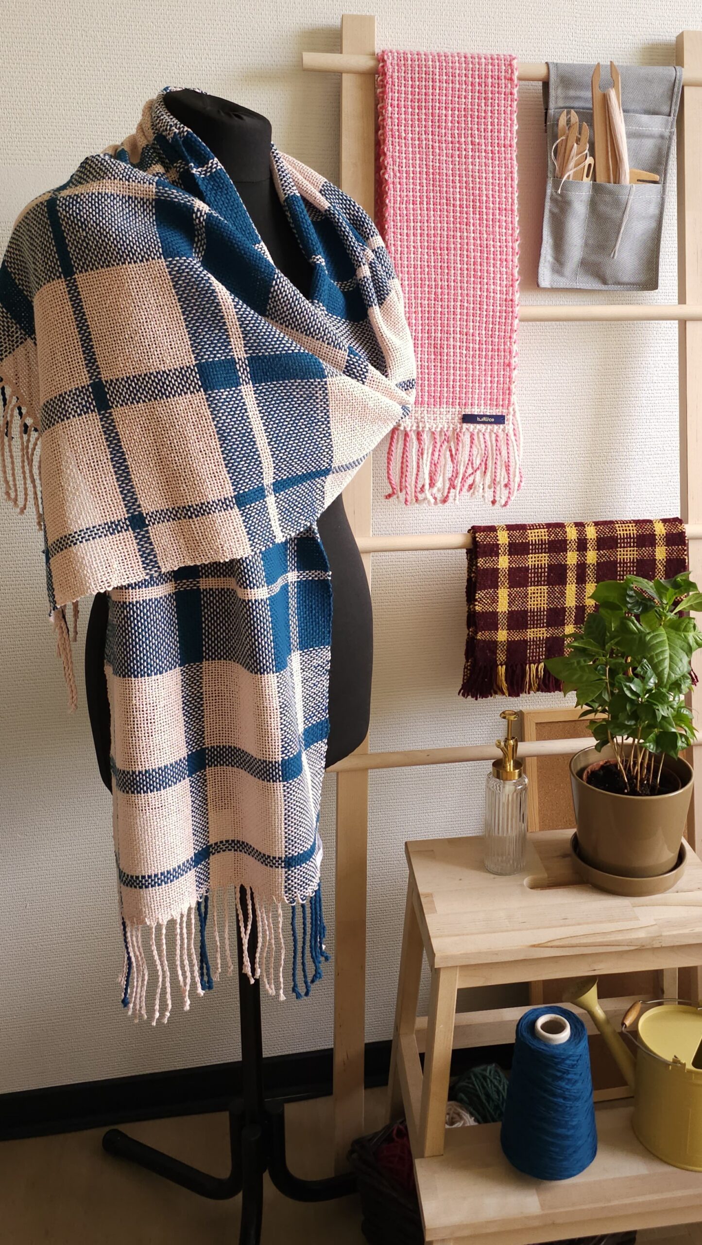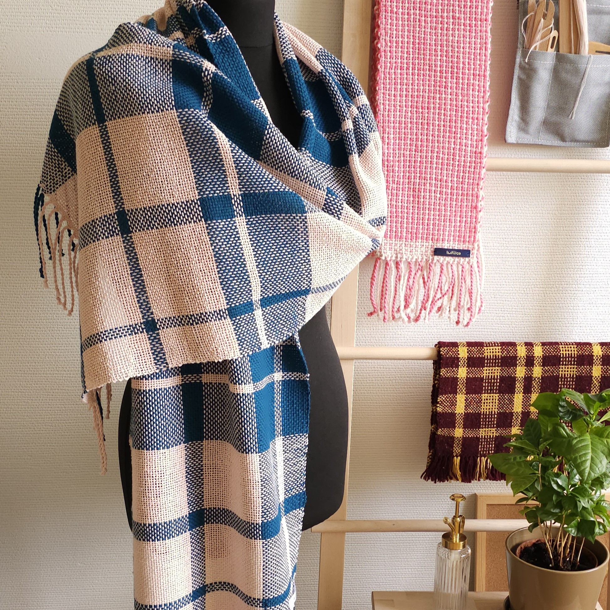 Gorgeous handmade checkered shawl made of high quality 100% cotton yarn, hand woven, size: 184 cm x 40 cm.