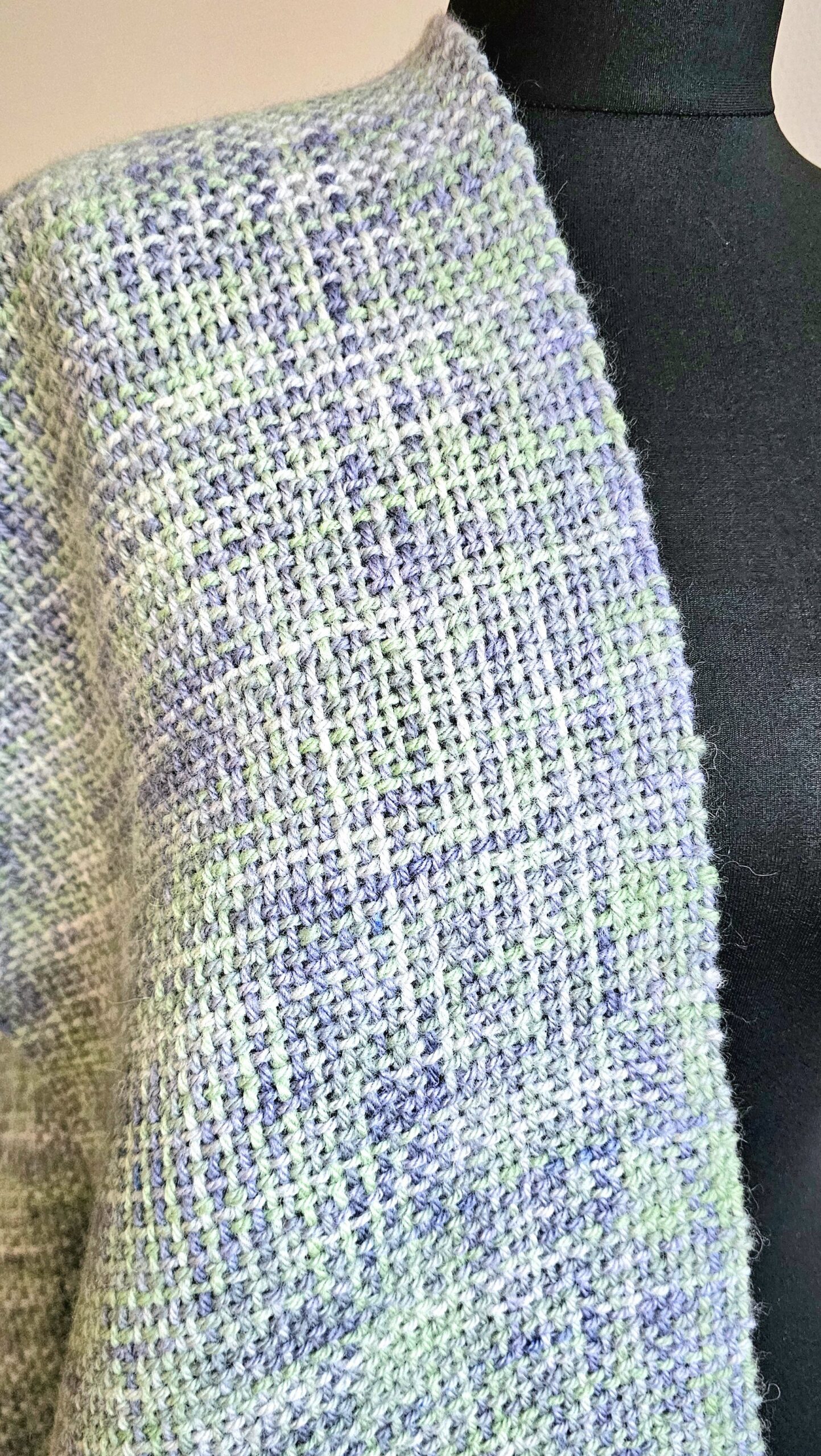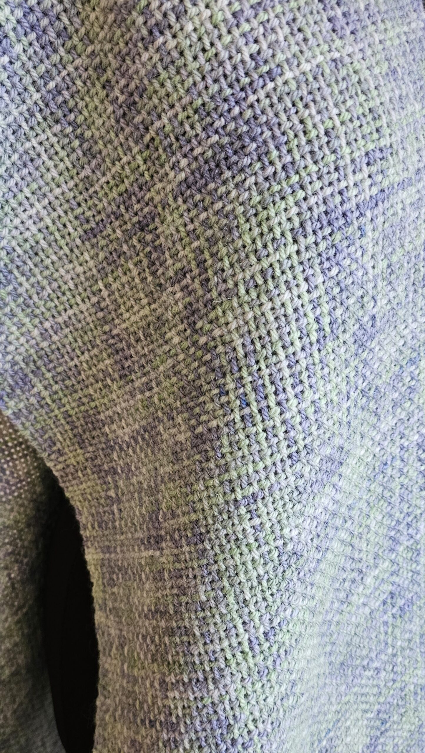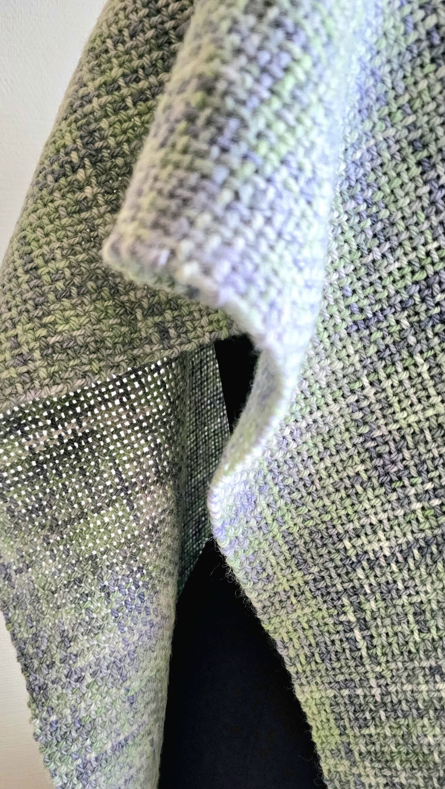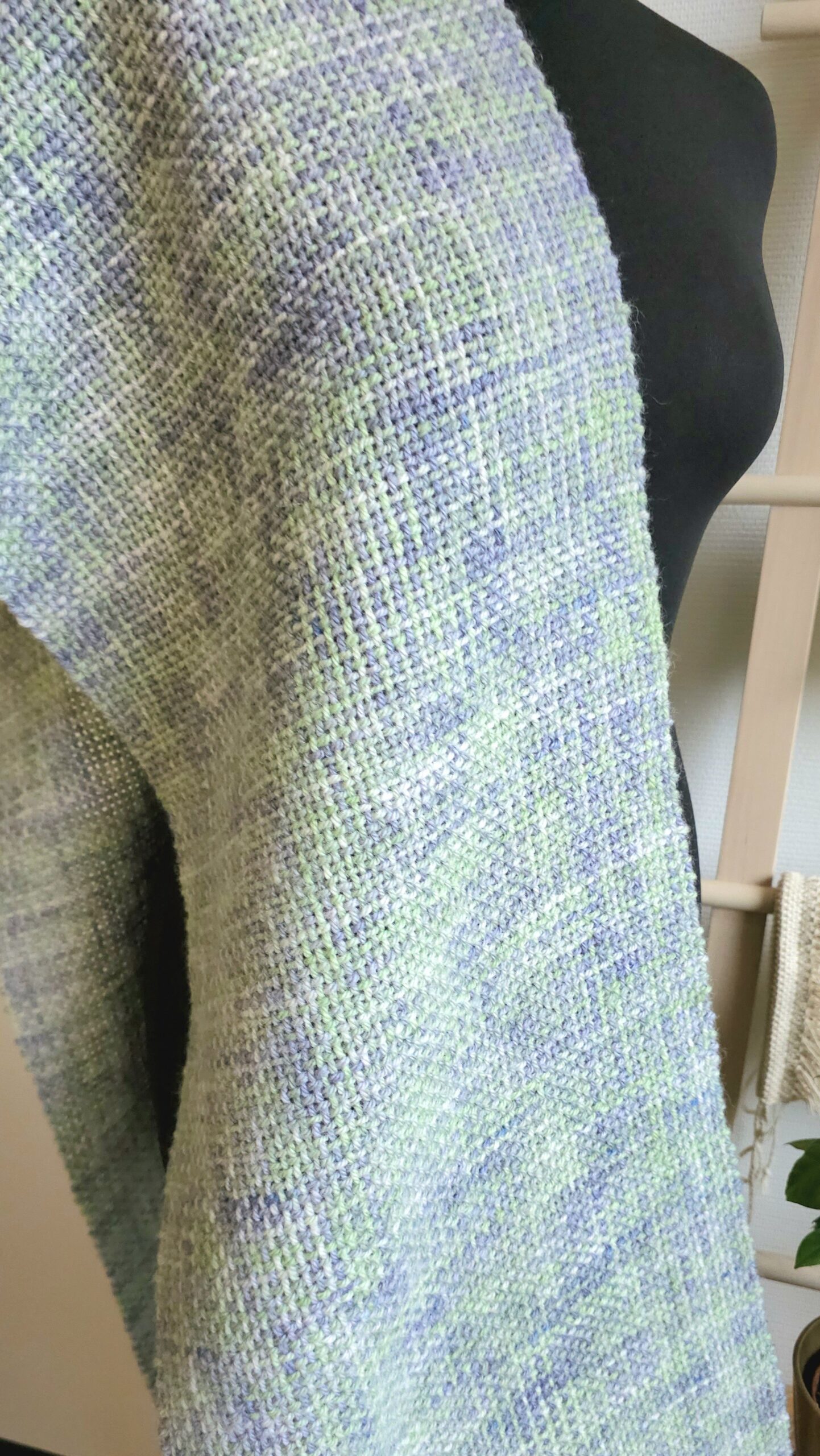 Handwoven scarf made from 100% sheep’s wool, a very warm winter scarf. The wool is hand-dyed, in navy blue and dusty light green colors, size: 186 cm x 34 cm