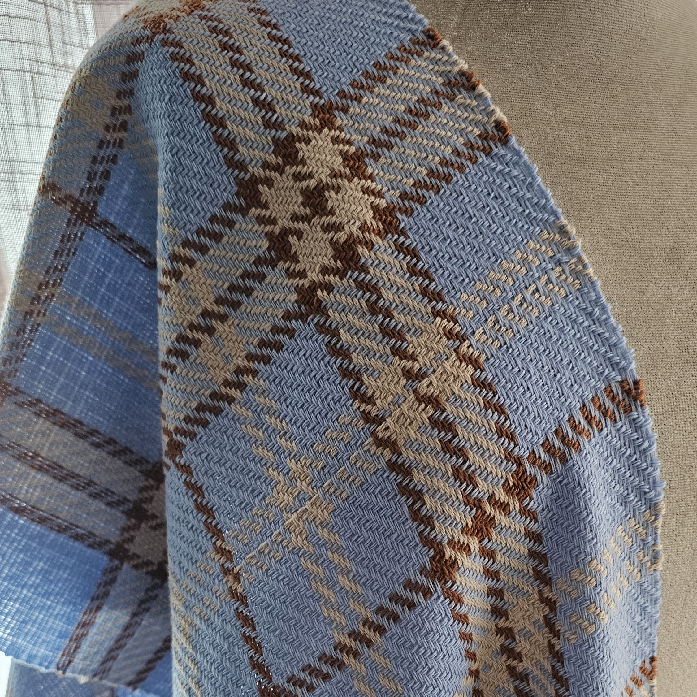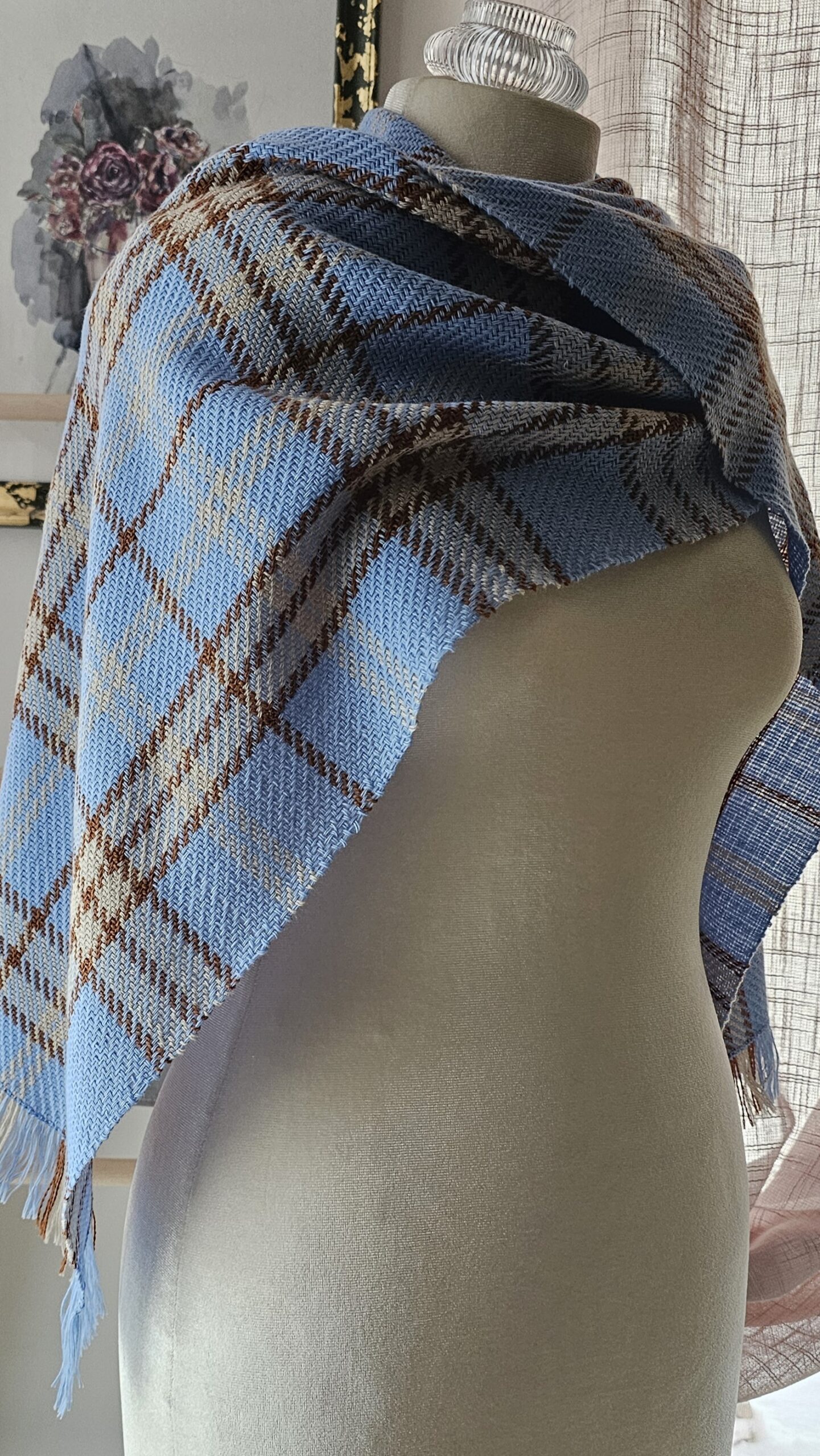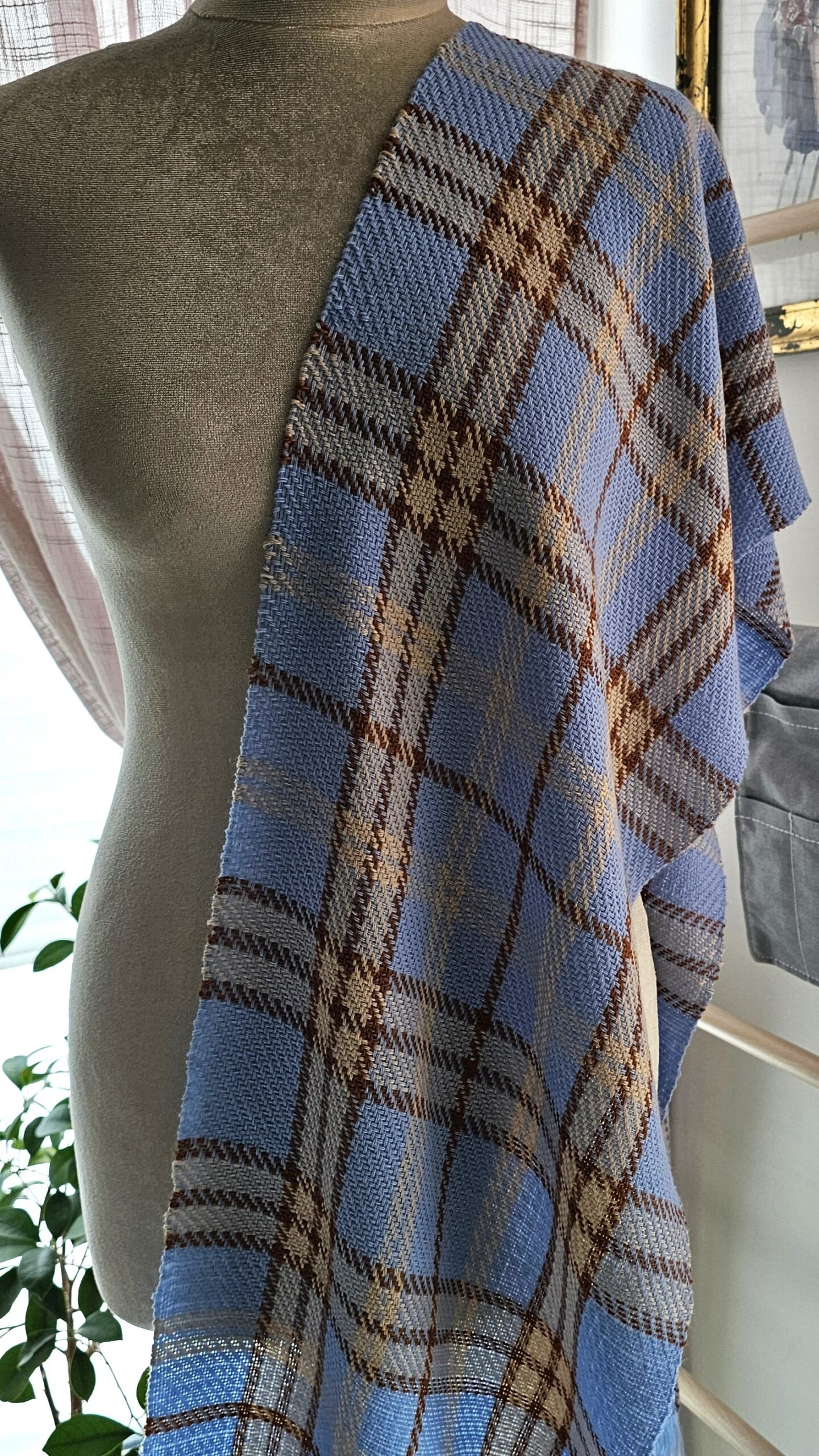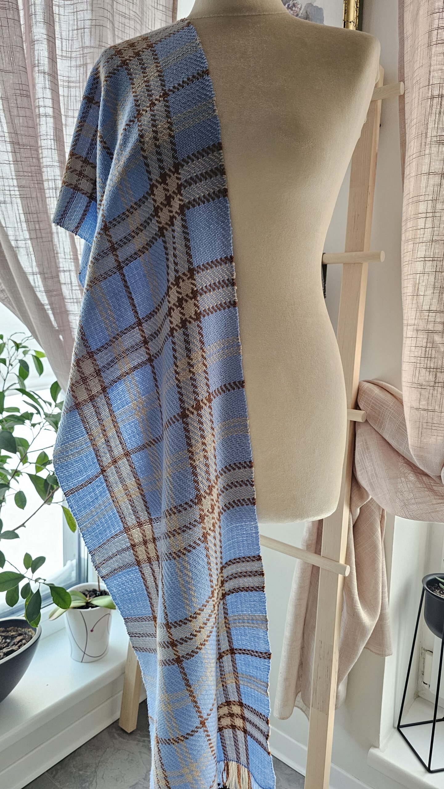 A warm and soft Blue Beige plaid Merino Wool made of high-quality italian 100% merinowool yarn , hand-woven on the loom, size: 186 cm x 33 cm