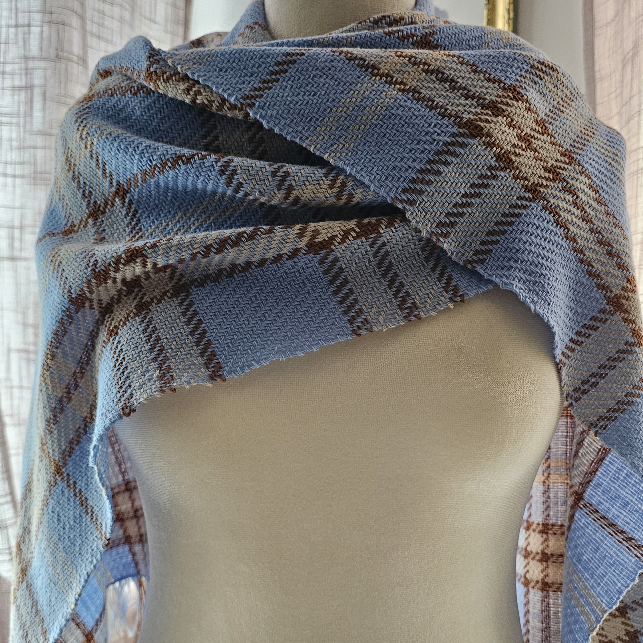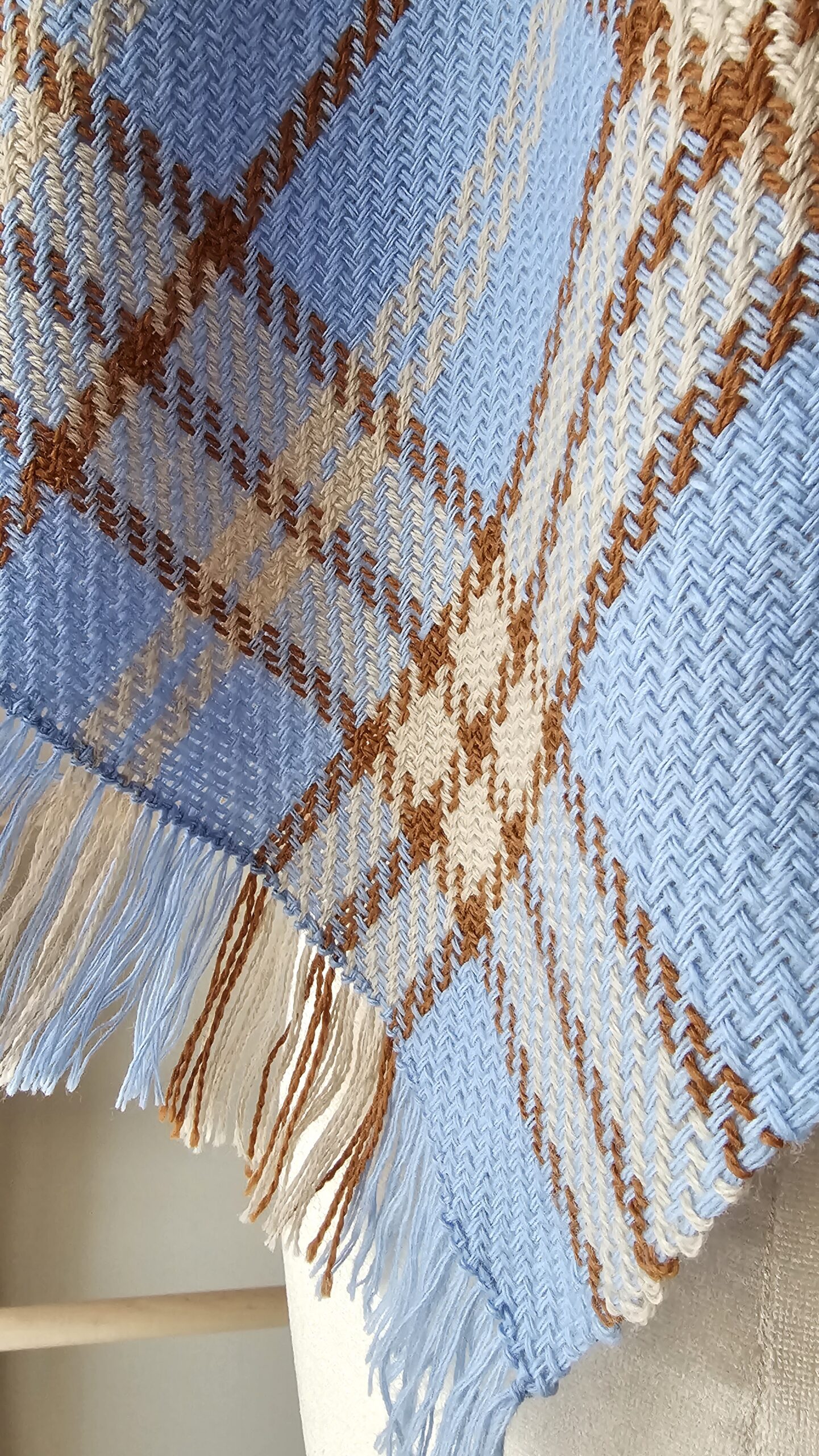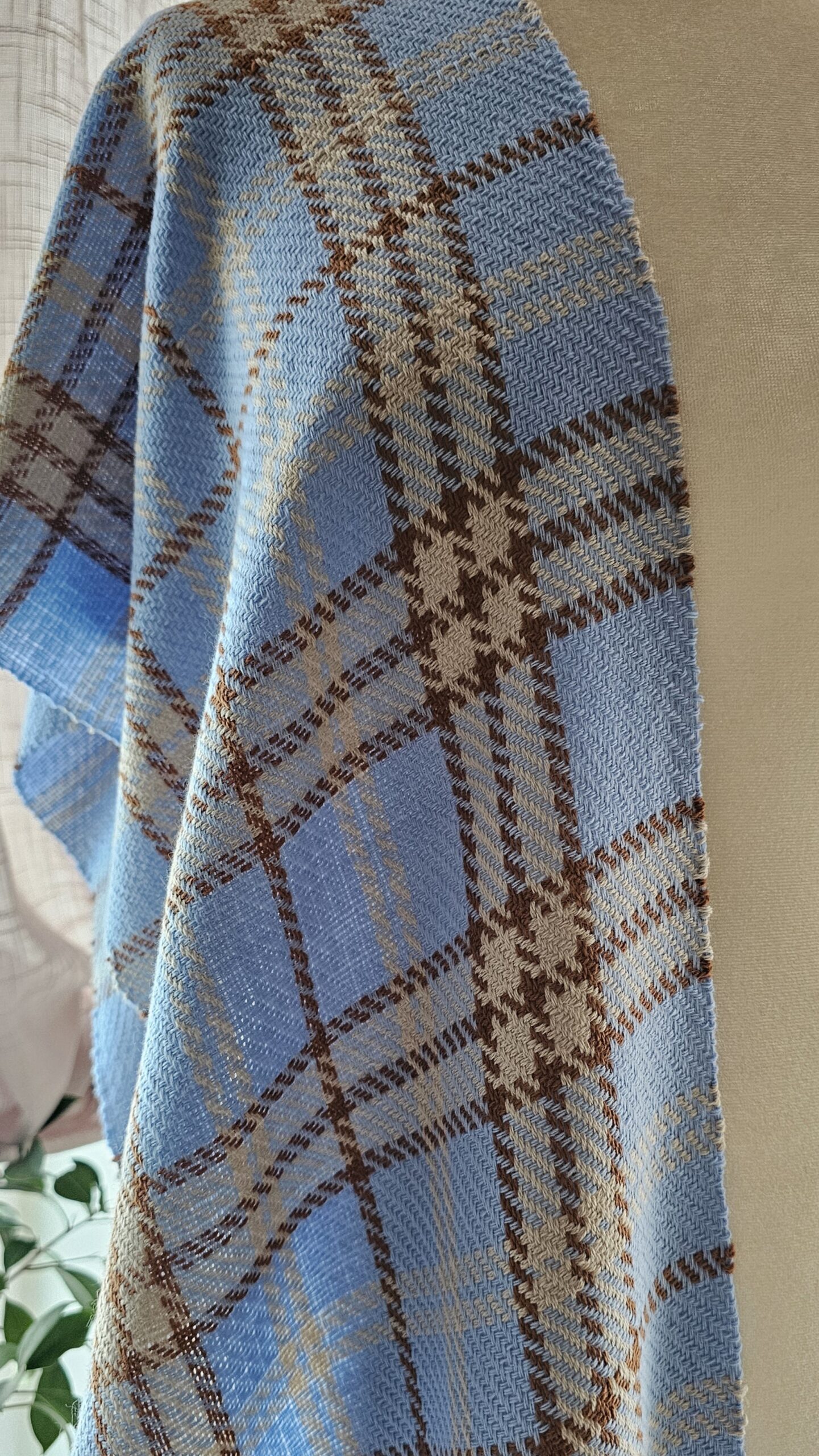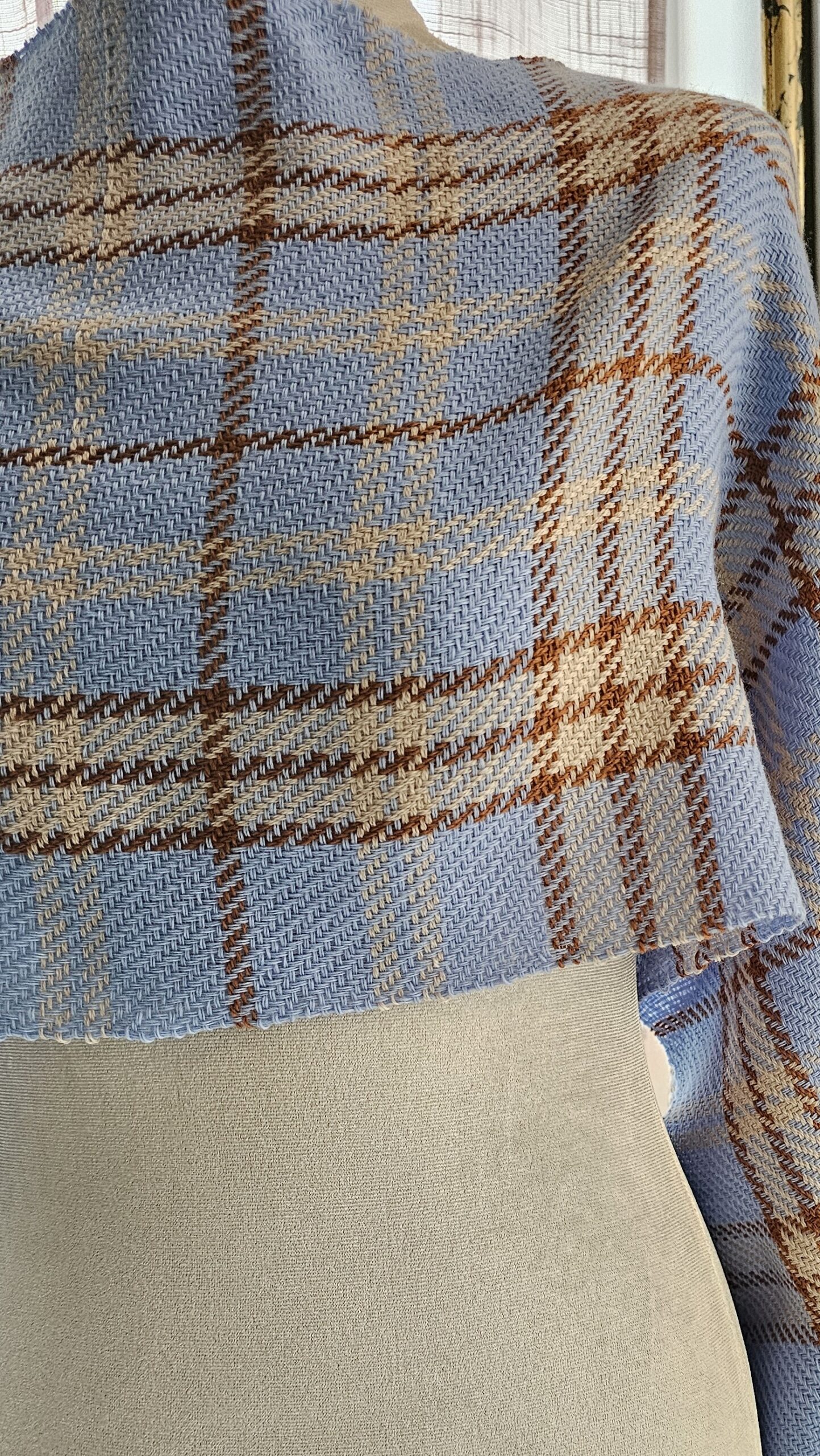 A warm and soft Blue Beige plaid Merino Wool made of high-quality italian 100% merinowool yarn , hand-woven on the loom, size: 186 cm x 33 cm