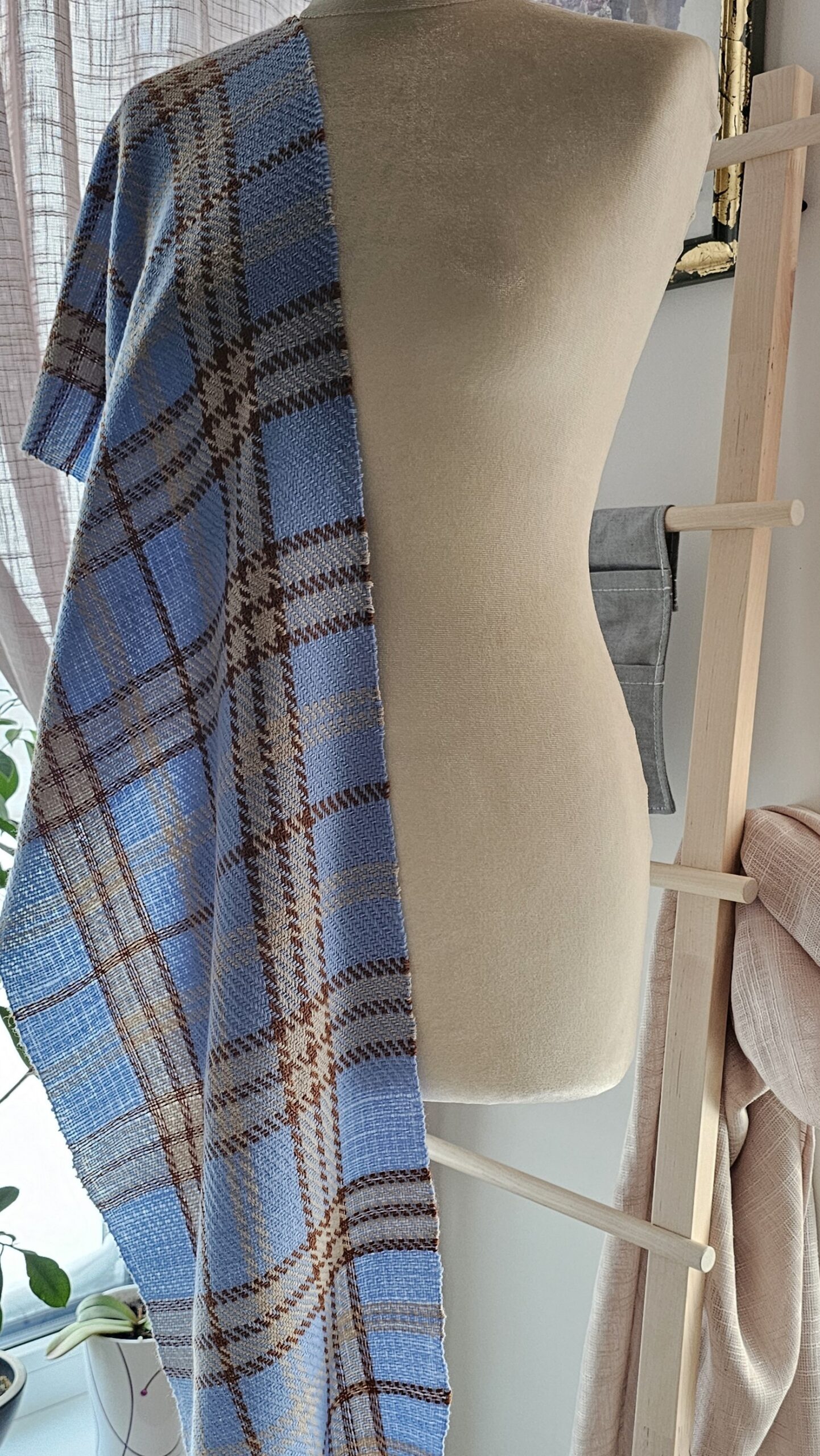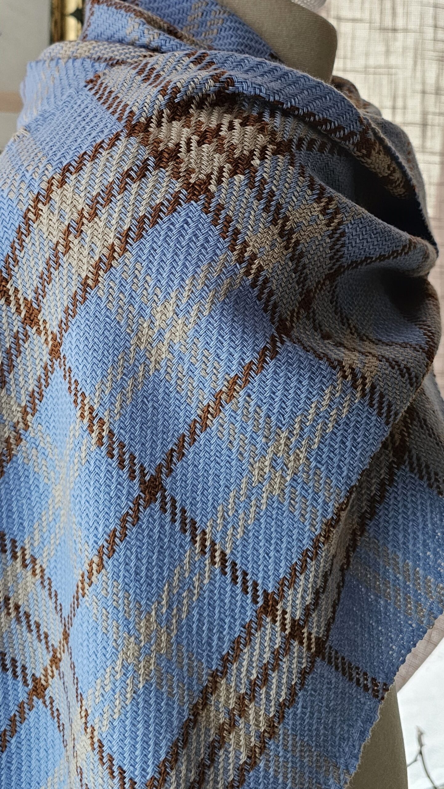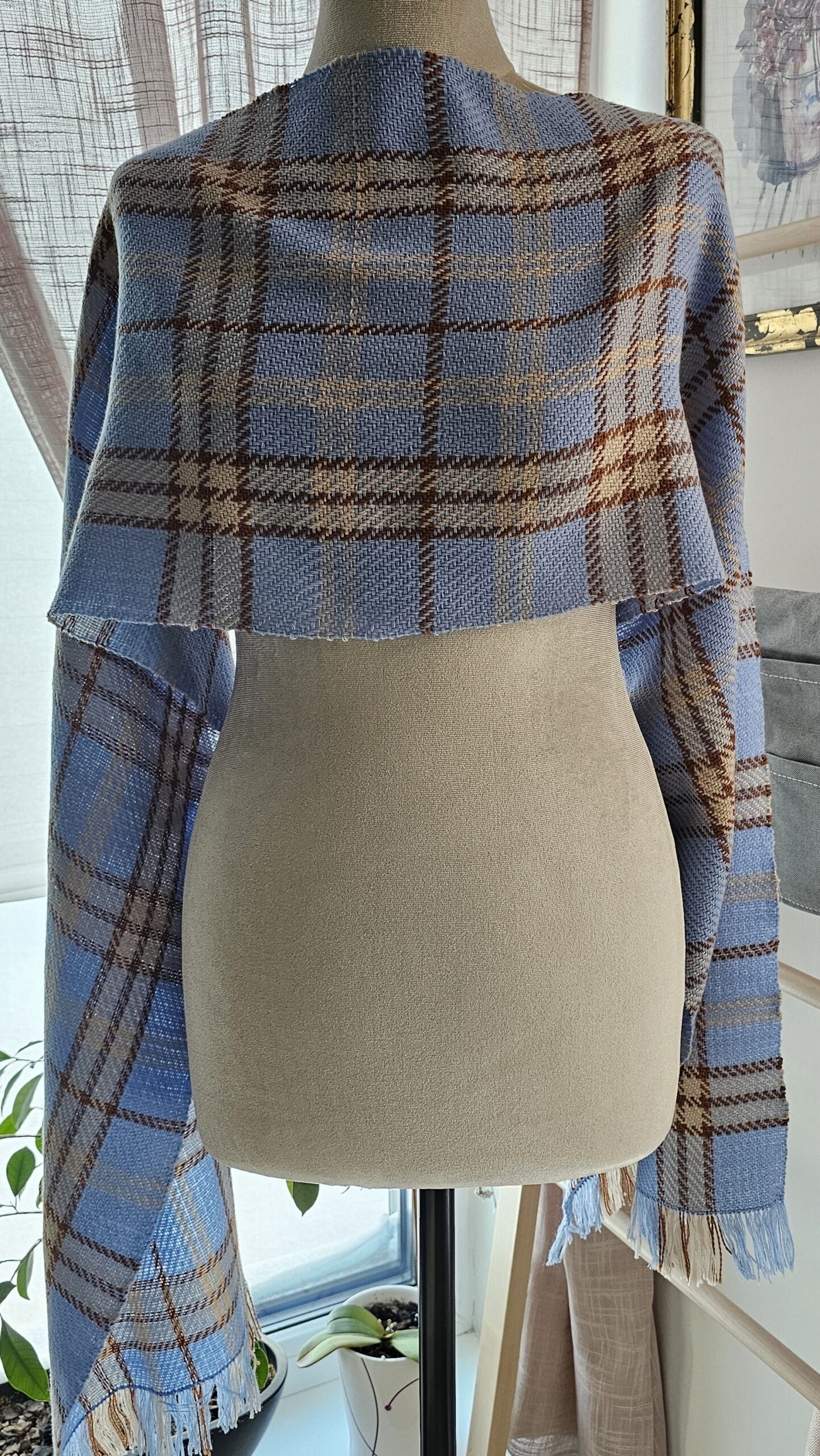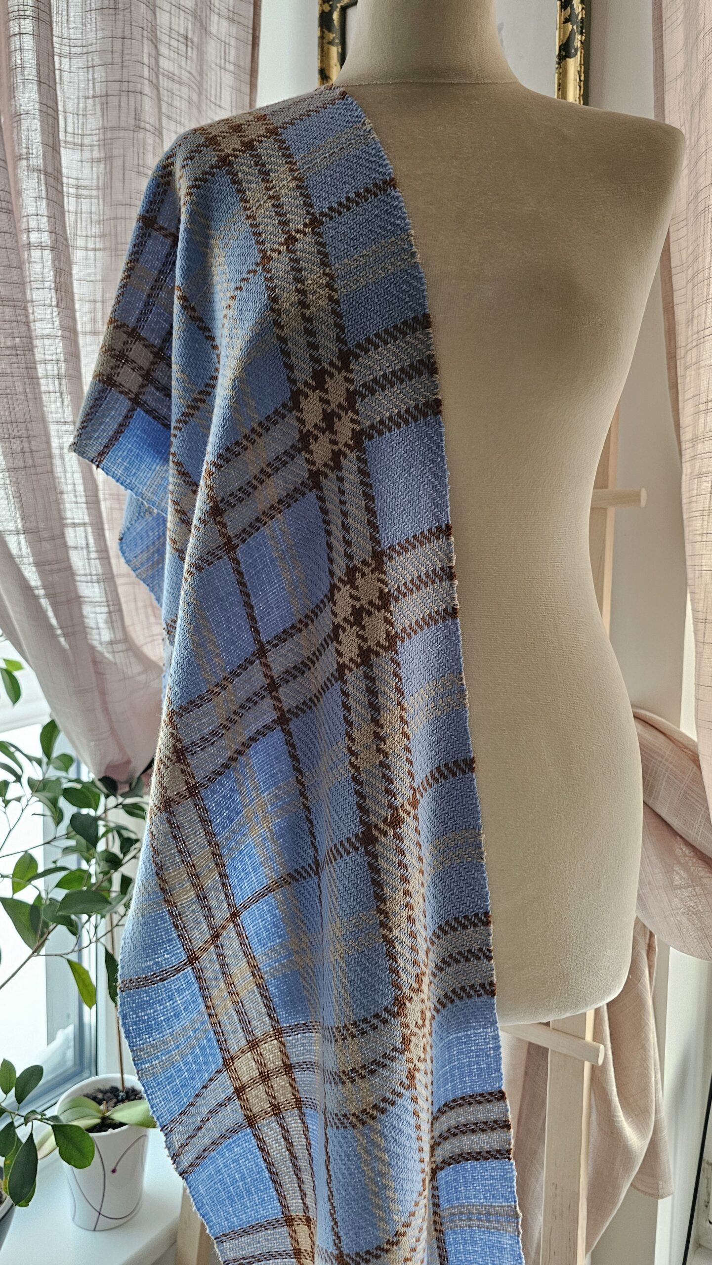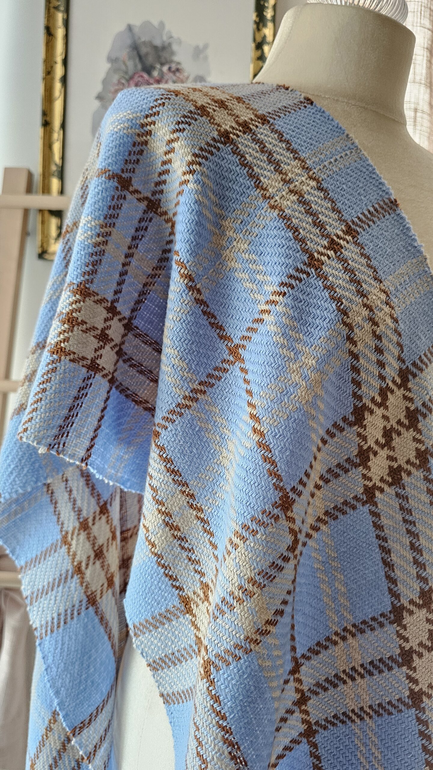 A warm and soft Blue Beige plaid Merino Wool made of high-quality italian 100% merinowool yarn , hand-woven on the loom, size: 186 cm x 33 cm