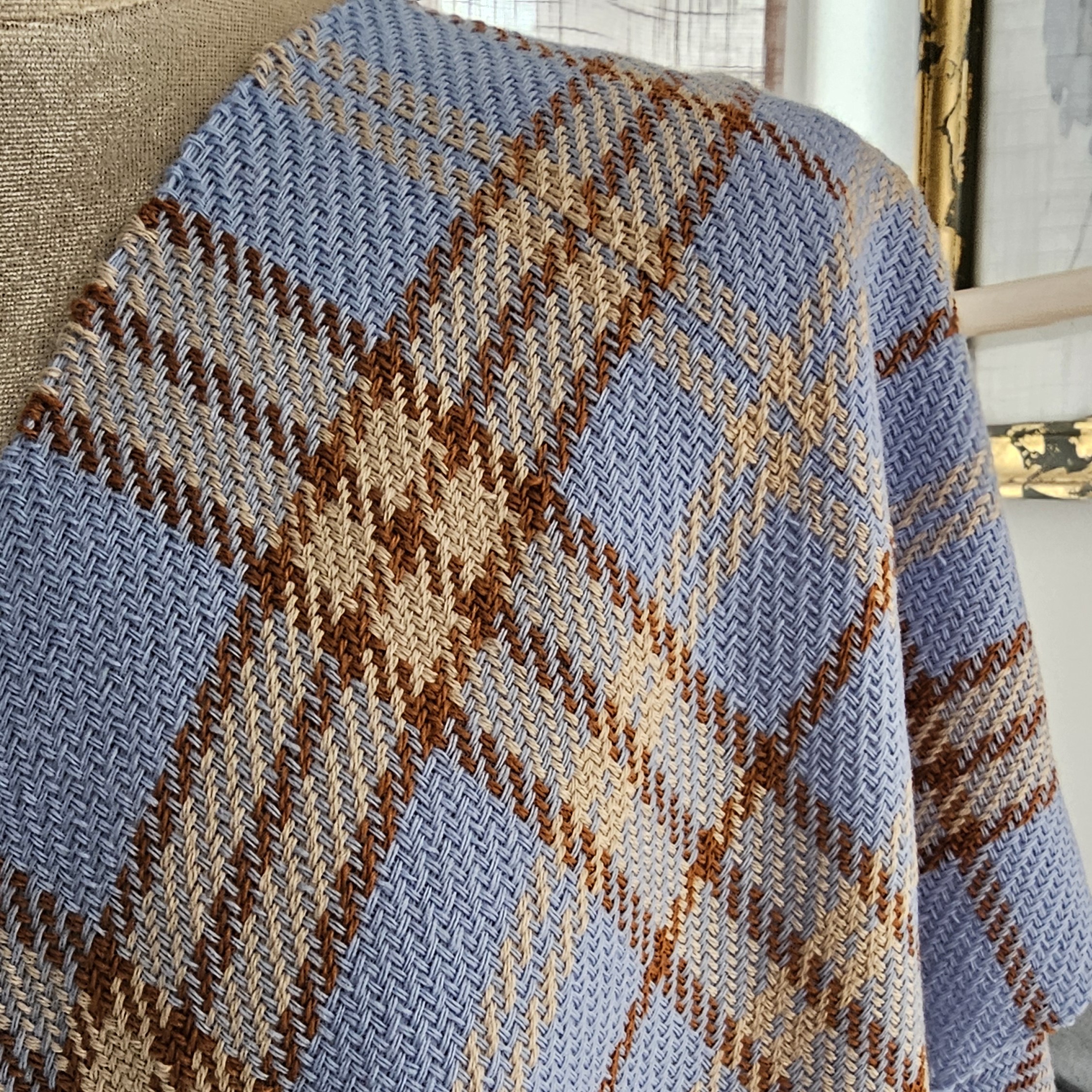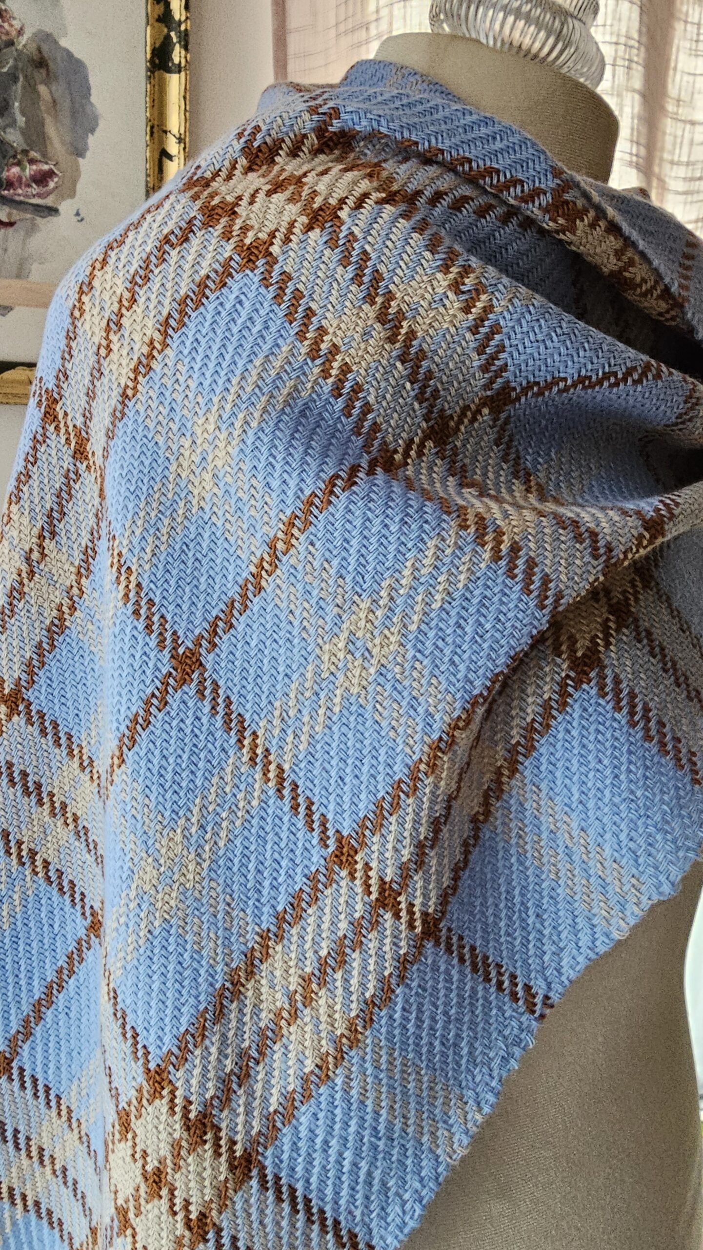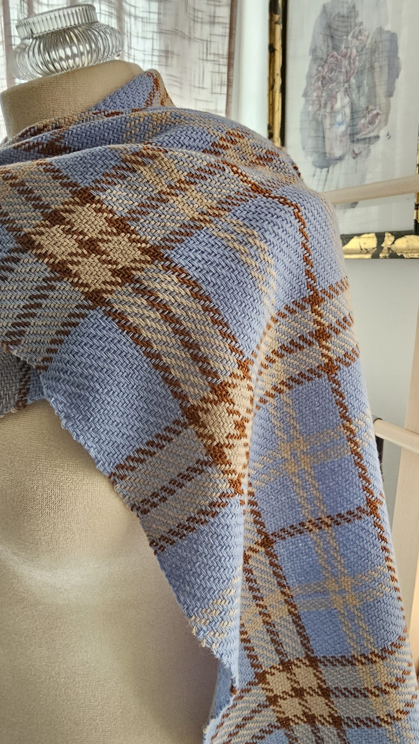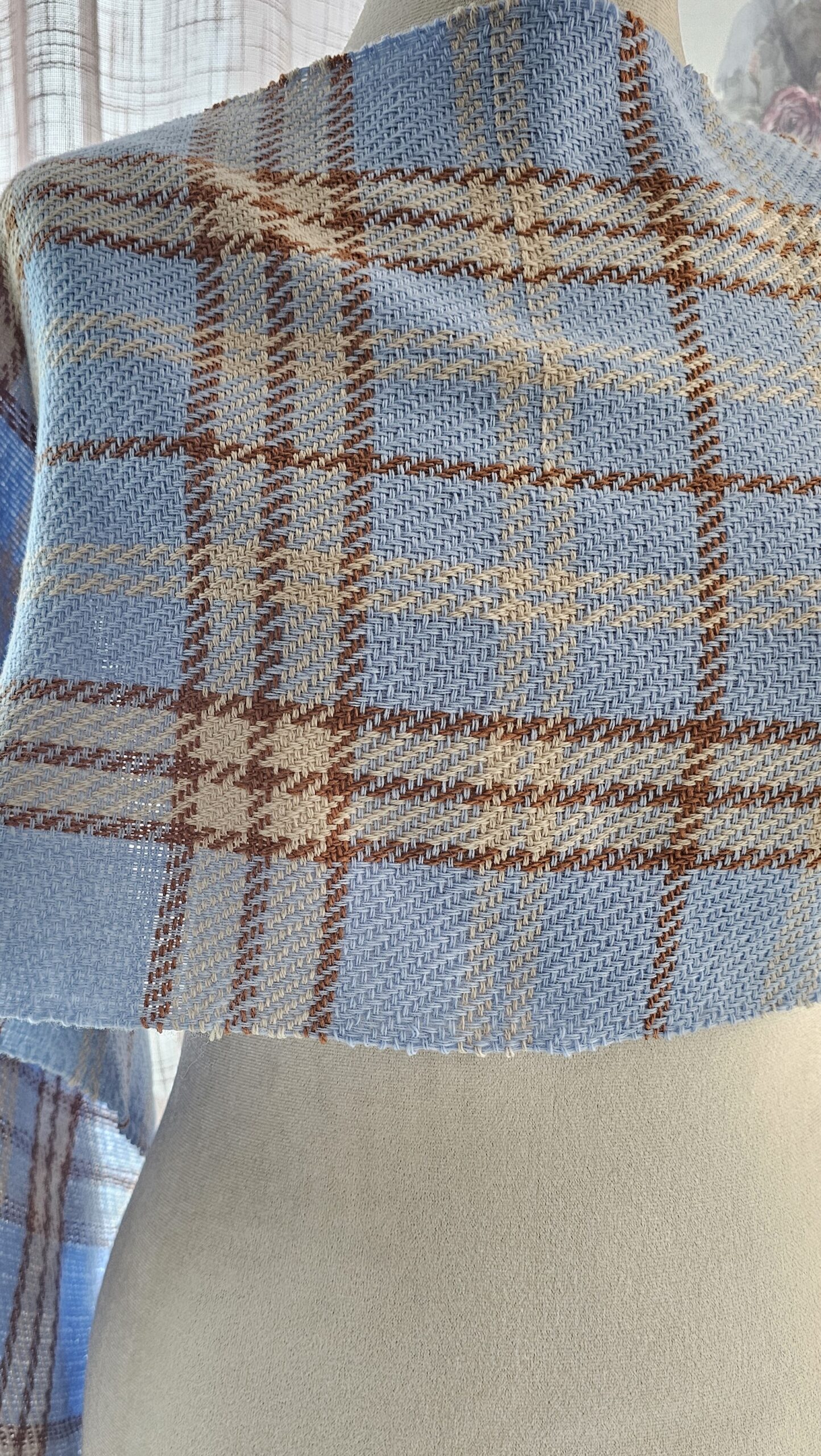 A warm and soft Blue Beige plaid Merino Wool made of high-quality italian 100% merinowool yarn , hand-woven on the loom, size: 186 cm x 33 cm