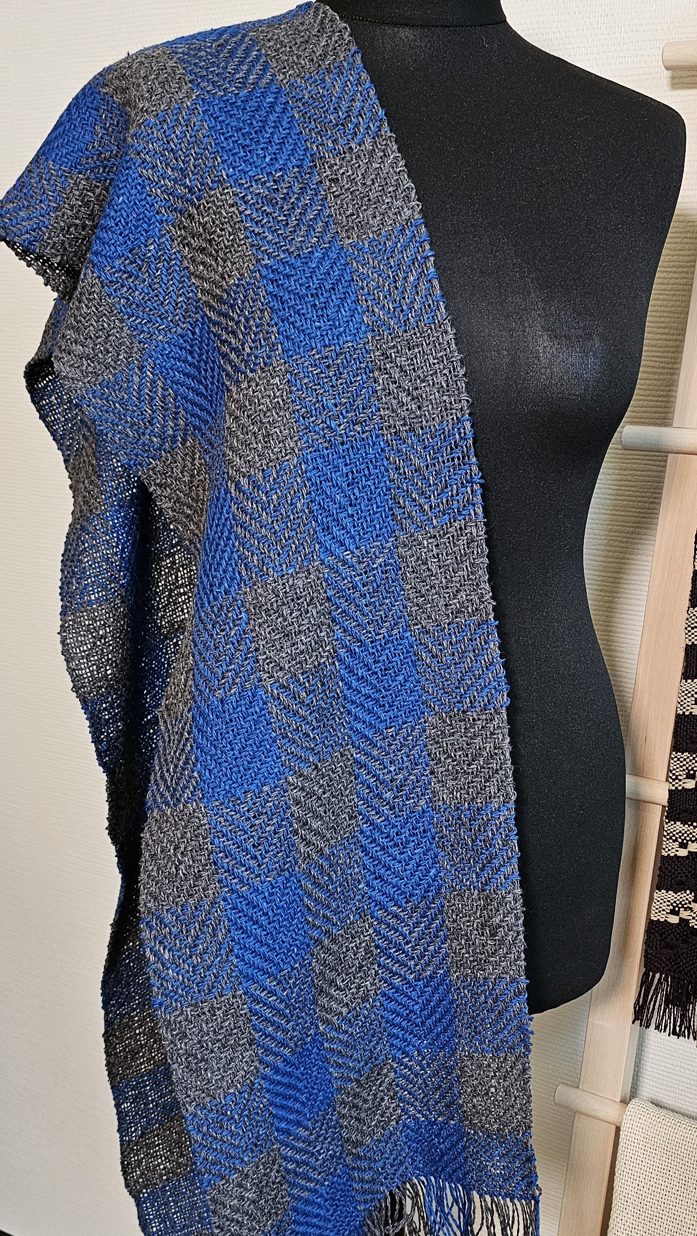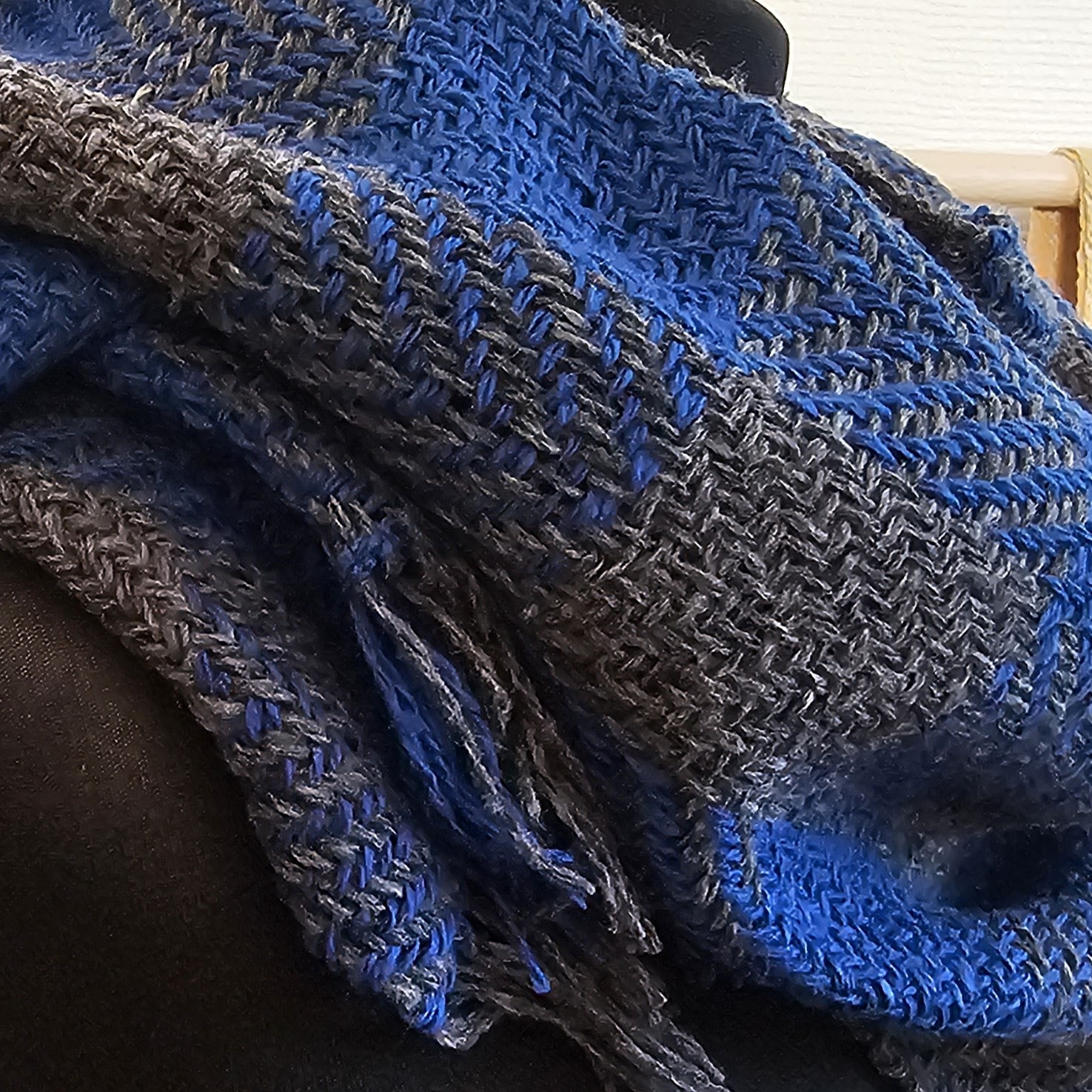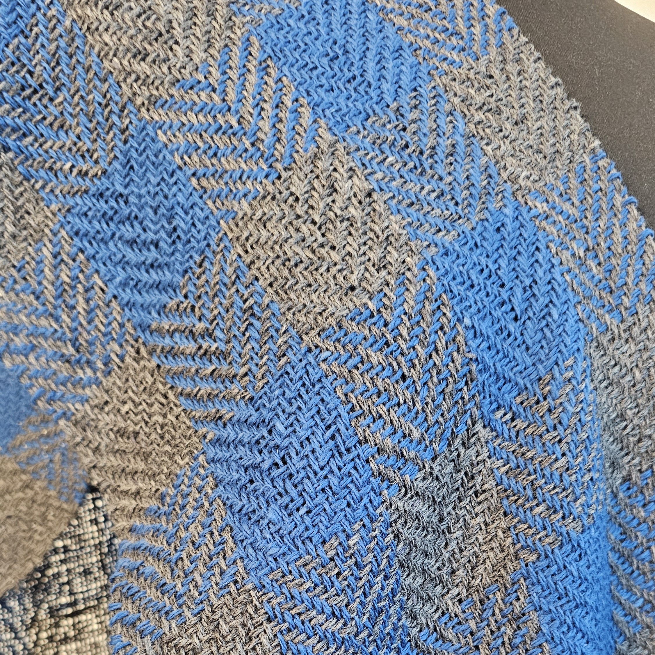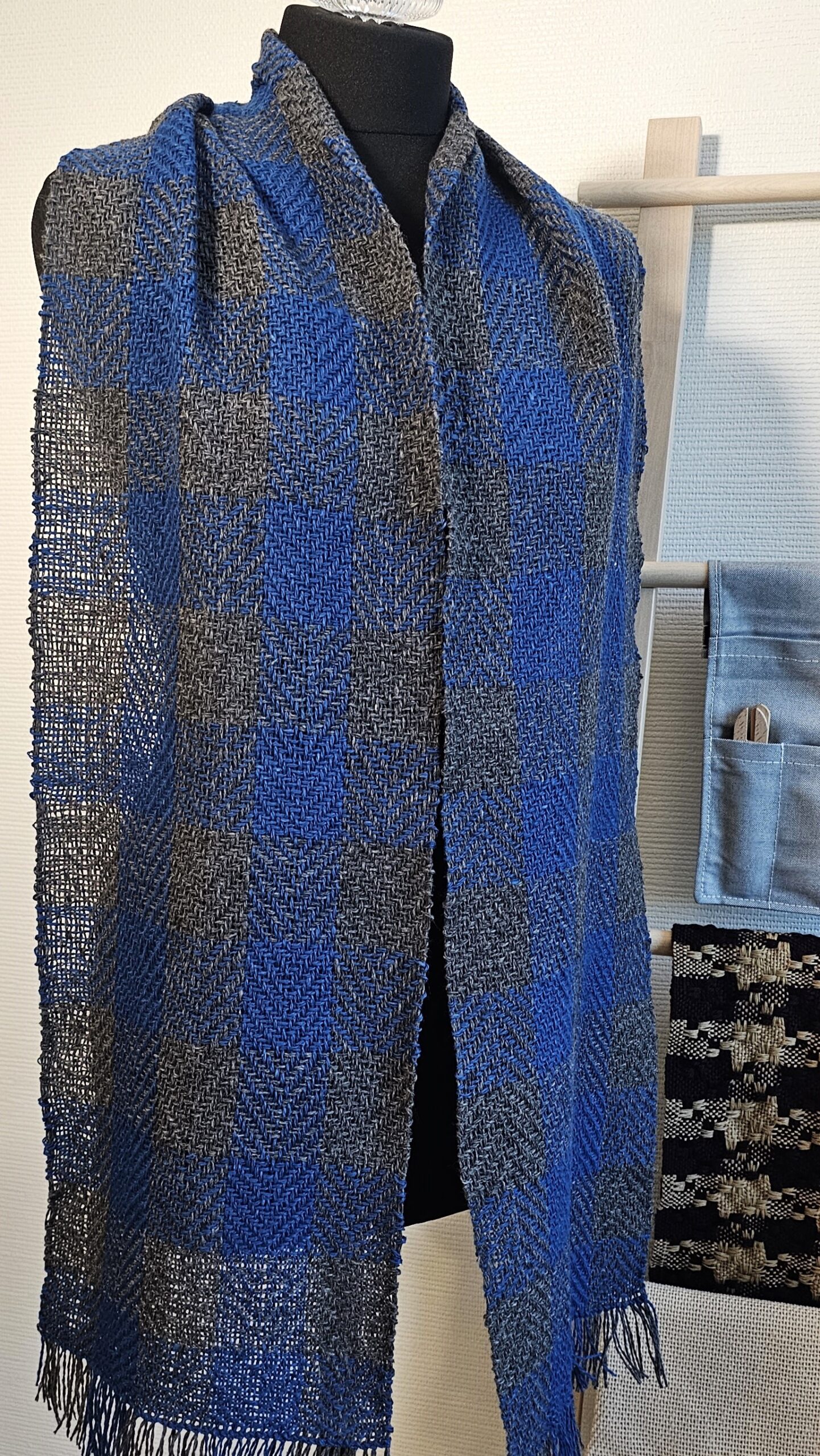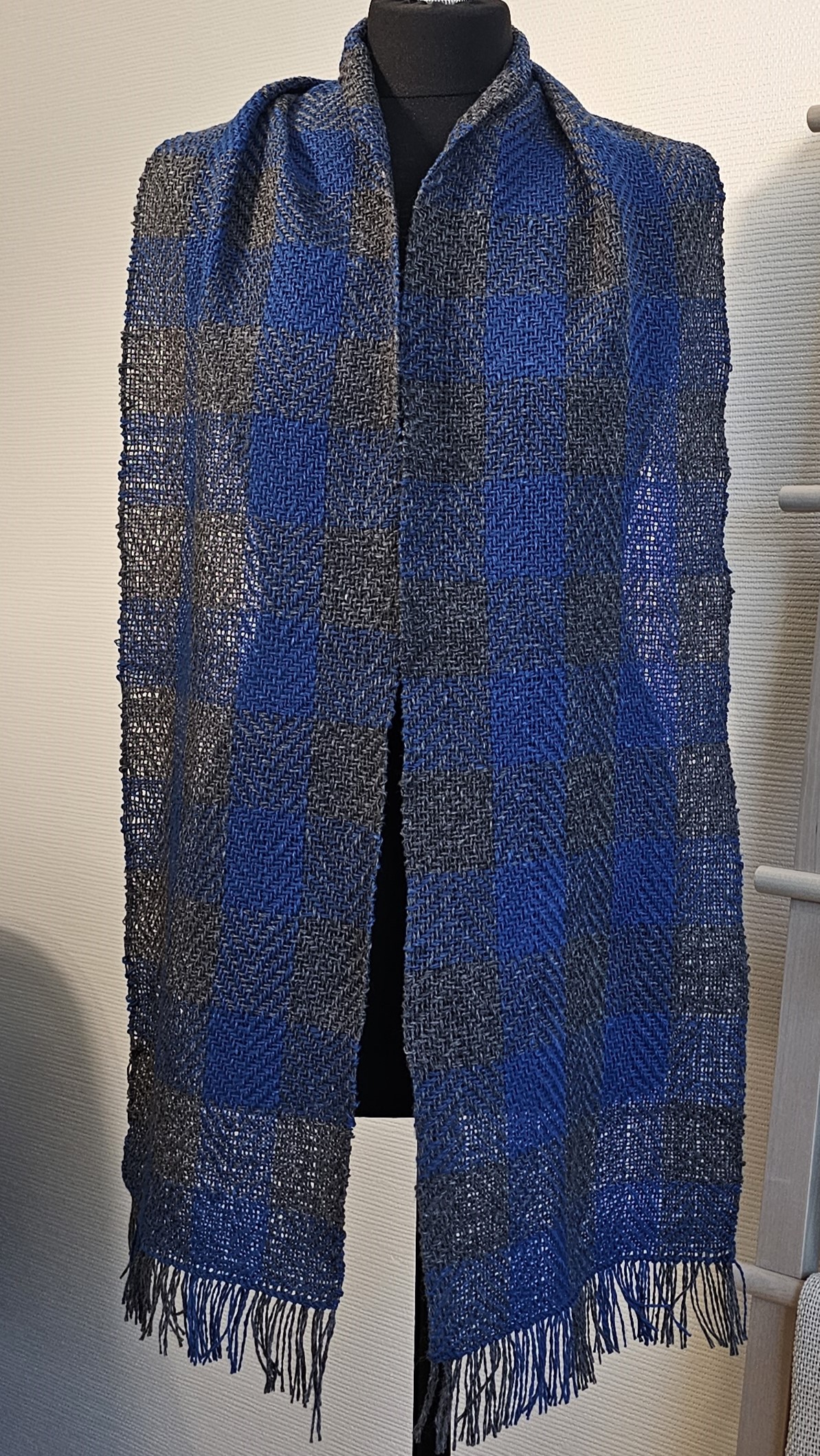 A warm and soft Blue Gray twill scarf plaid Tweed Wool made of high-quality italian 100% tweed yarn , hand-woven on the loom, size: 180 cm x 24 cm