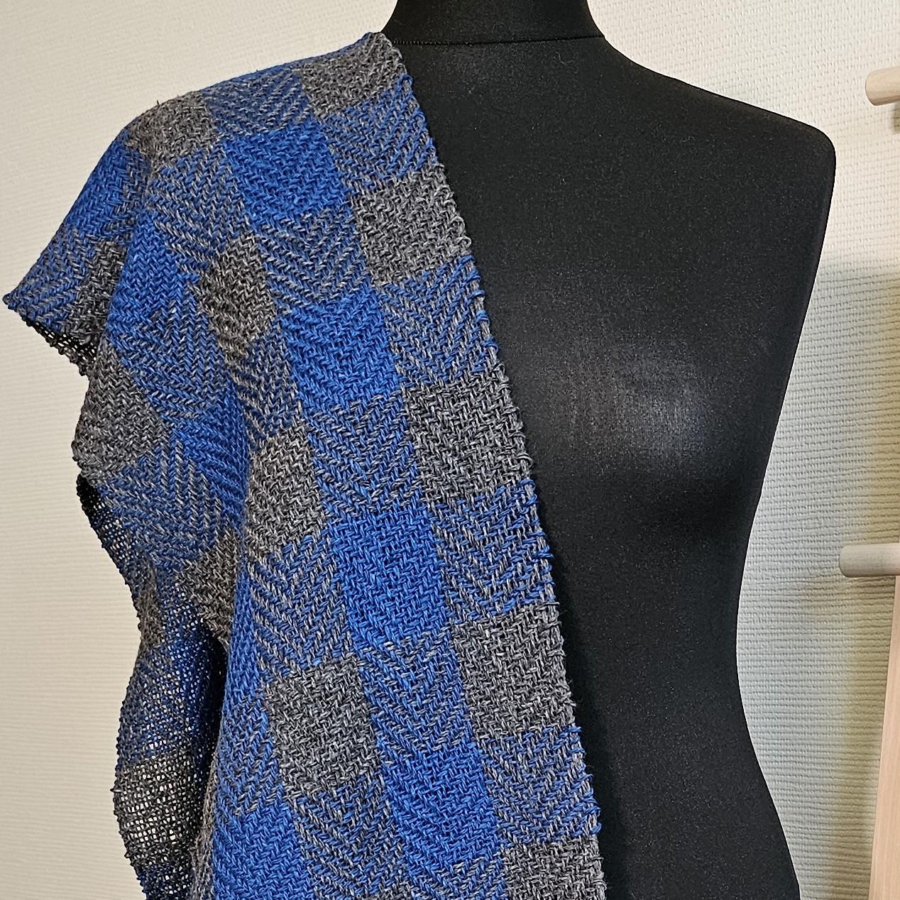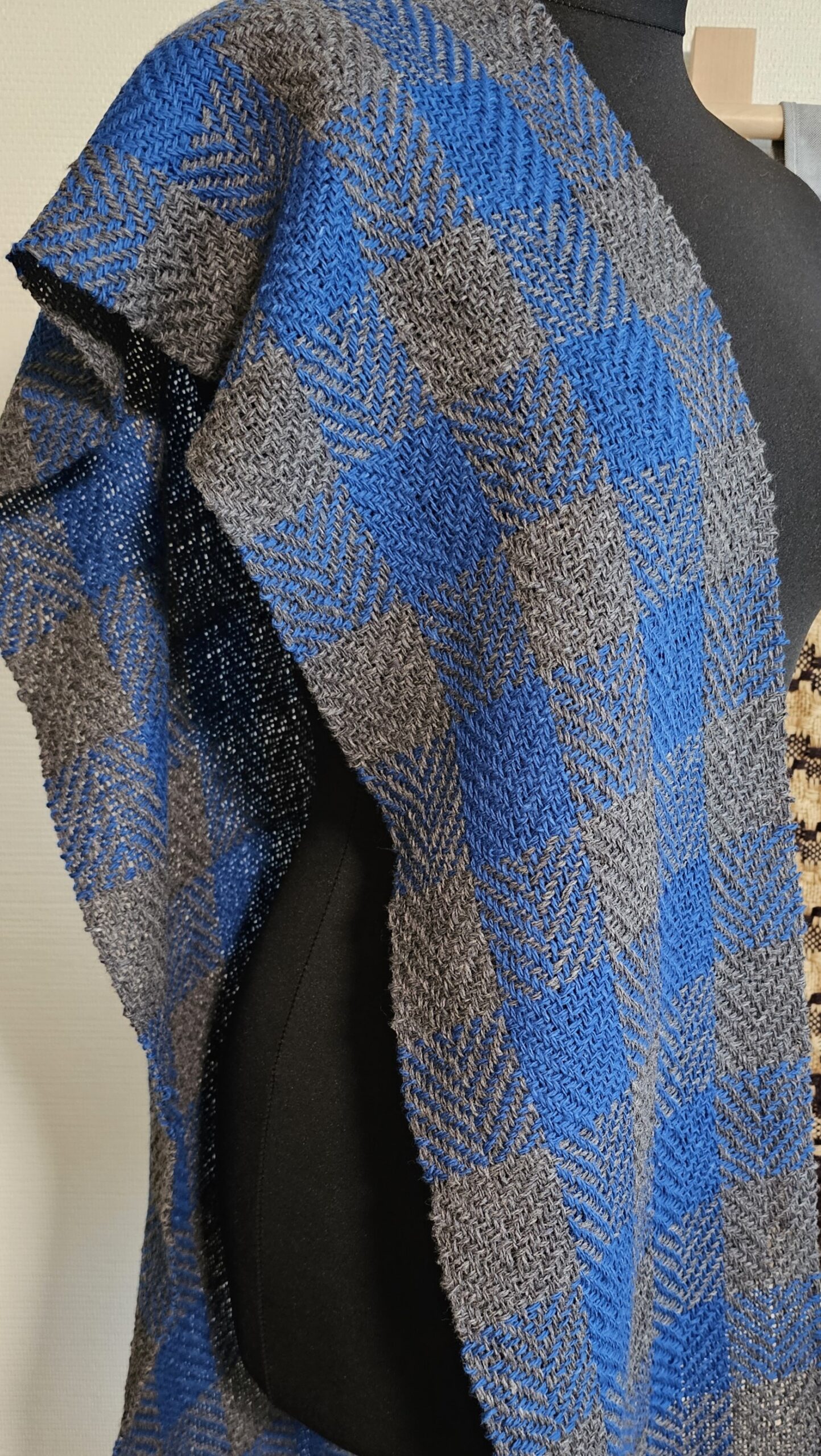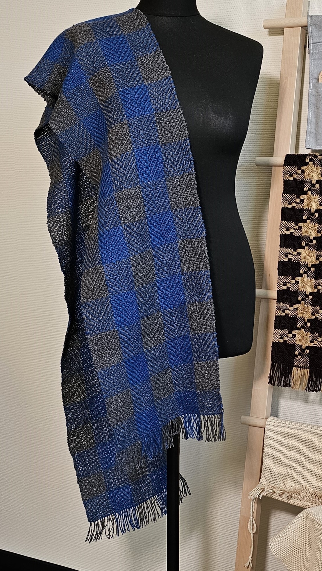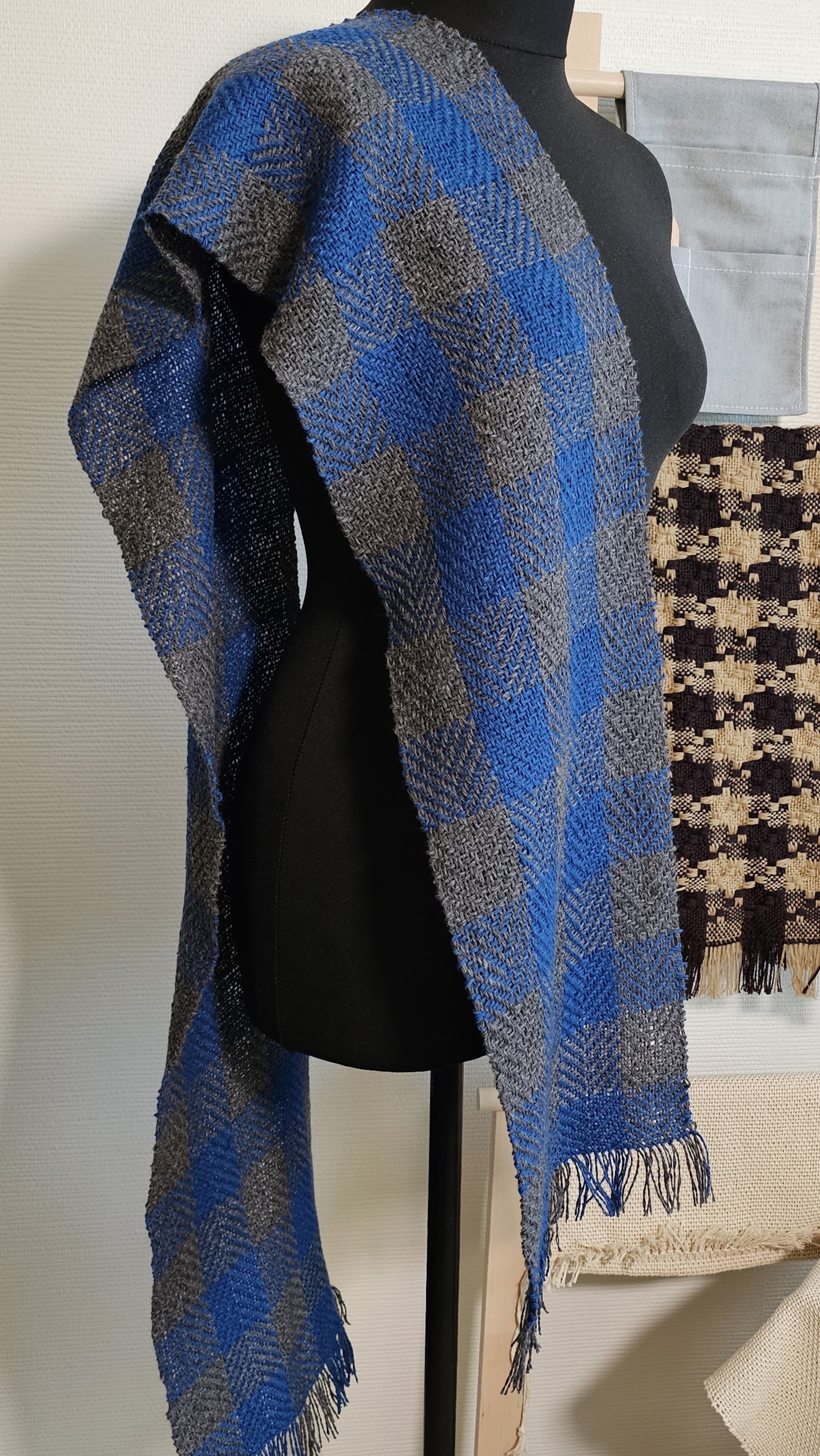 A warm and soft Blue Gray twill scarf plaid Tweed Wool made of high-quality italian 100% tweed yarn , hand-woven on the loom, size: 180 cm x 24 cm