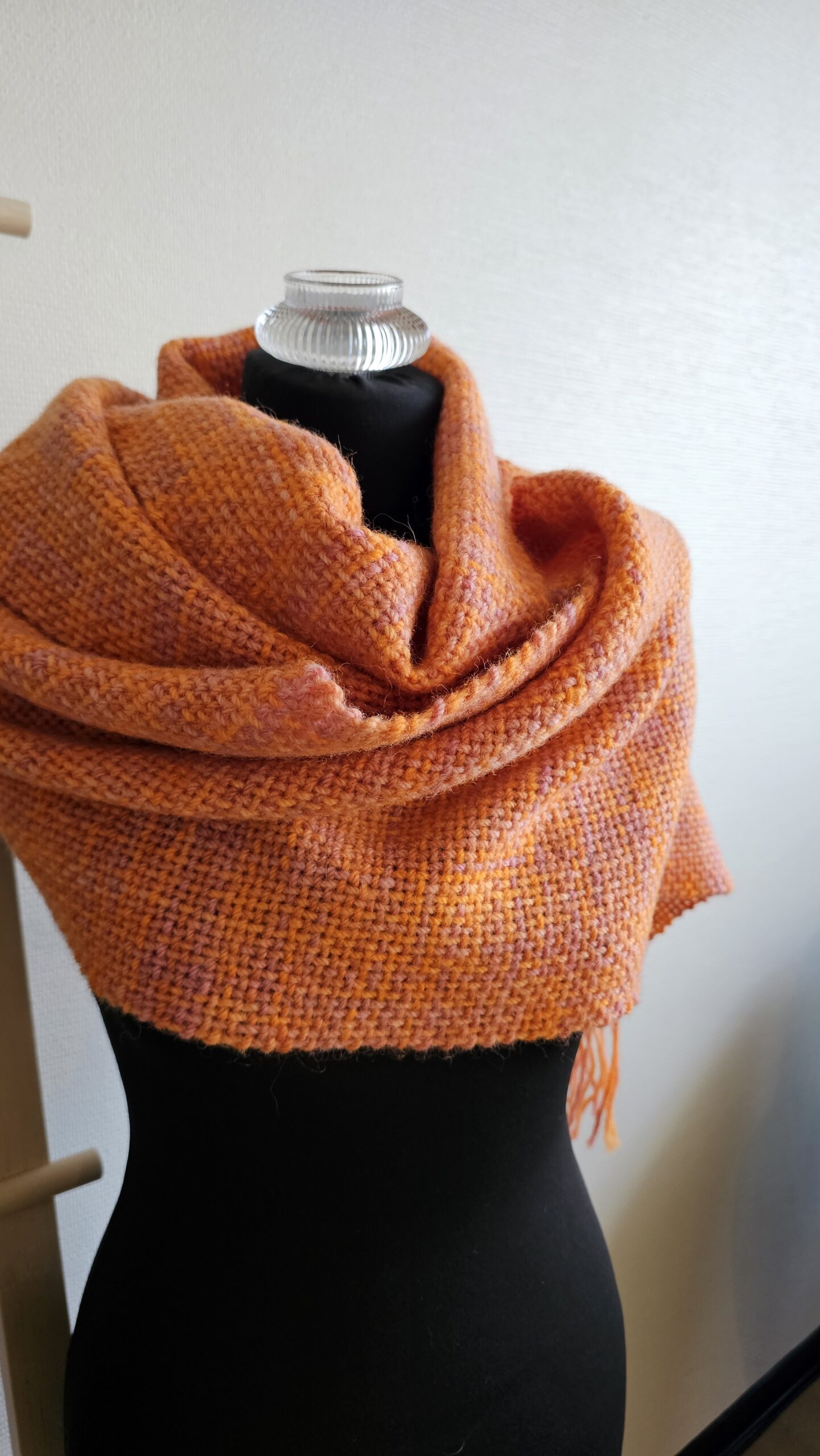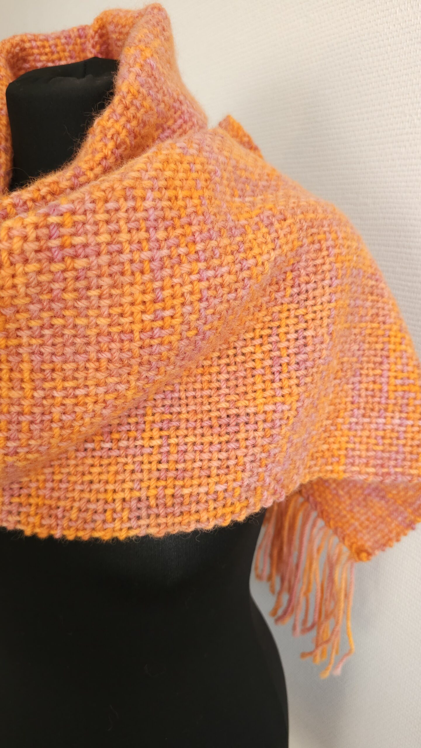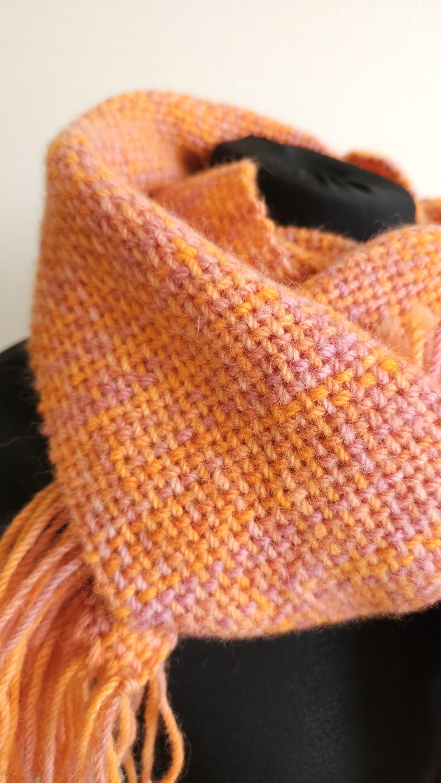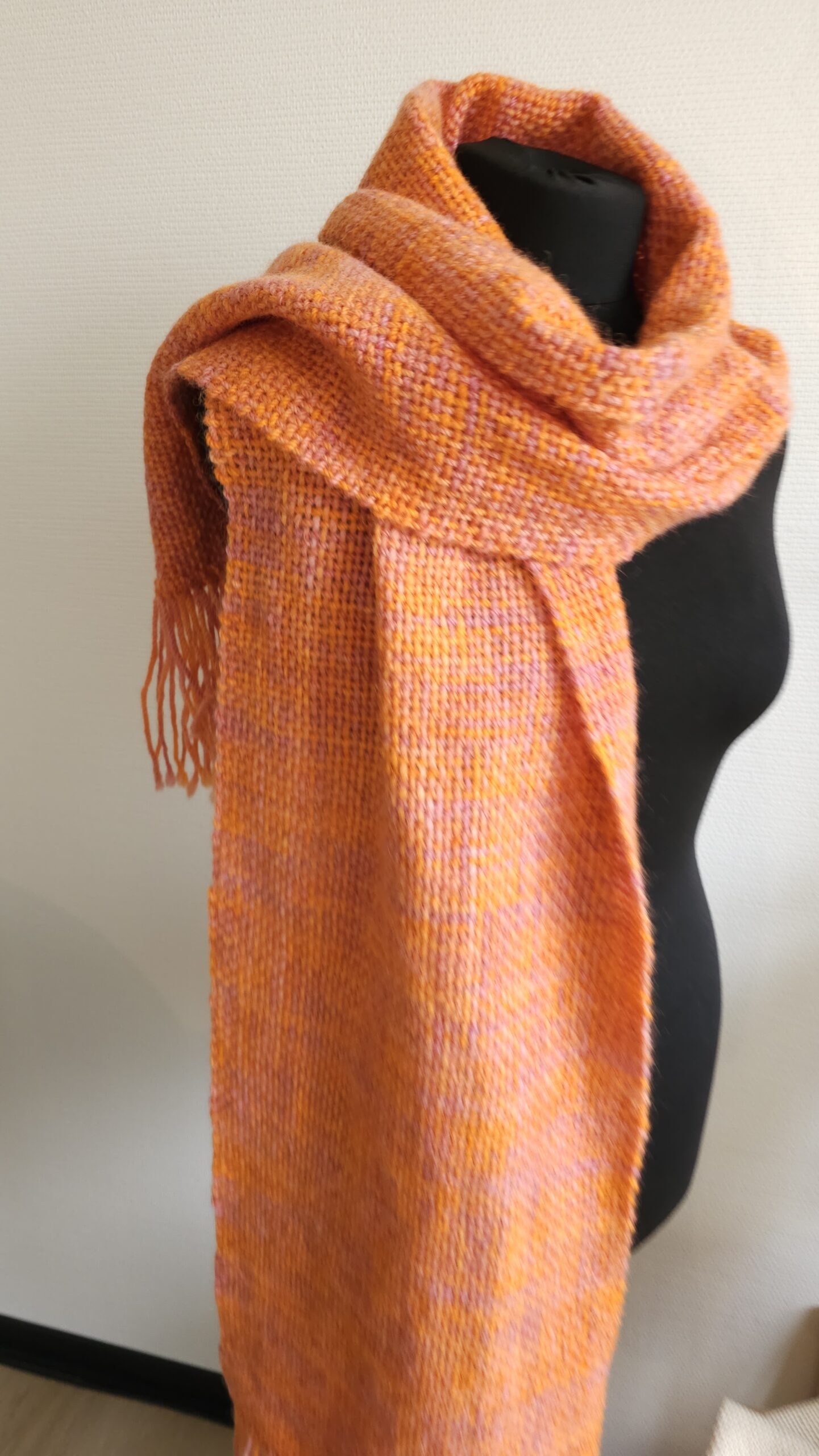 Handwoven scarf made from 100% sheep’s wool, a very warm winter scarf. The wool is hand-dyed, in bright orange and dusty pink colors., size: 188 cm x 30 cm