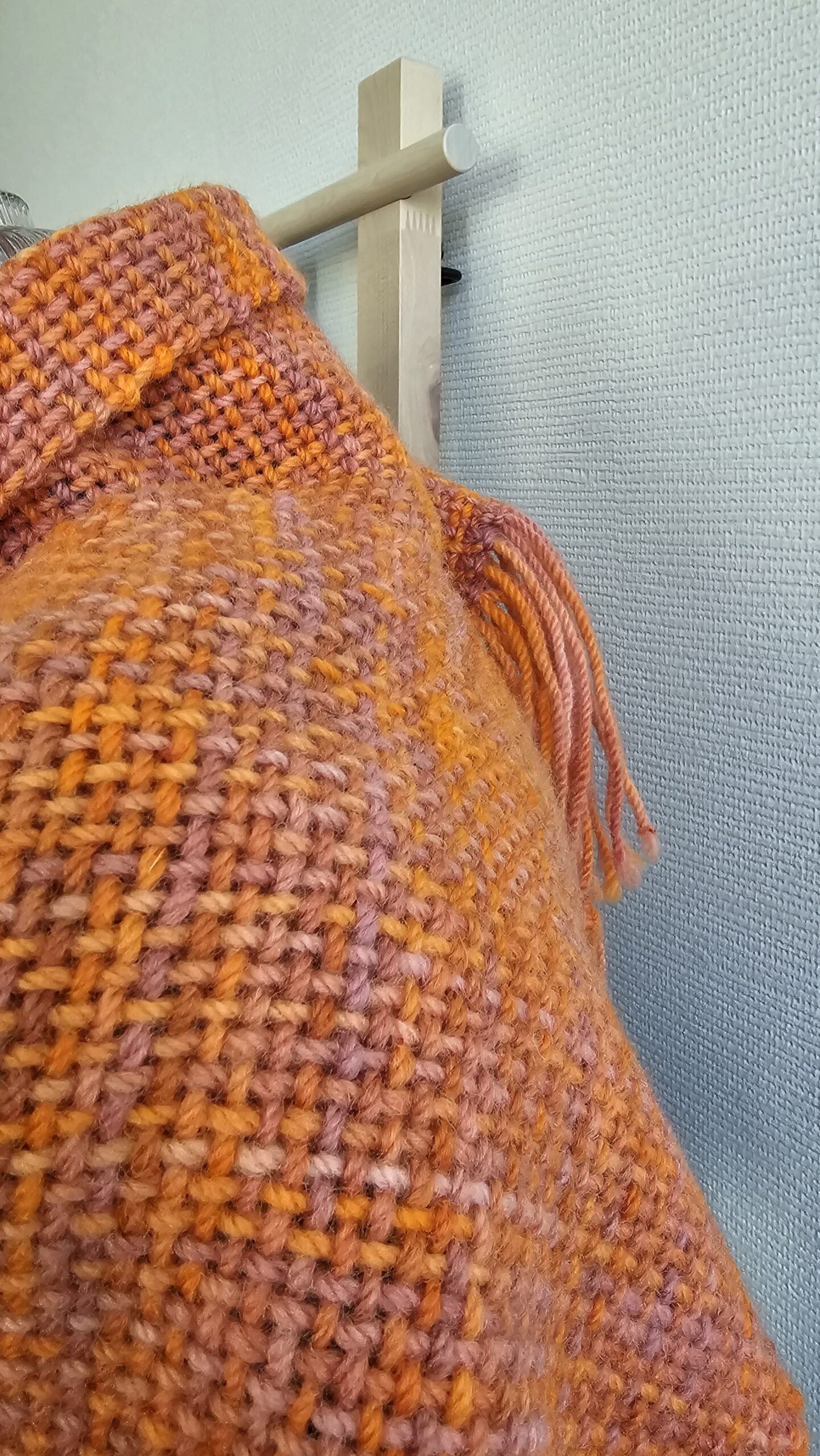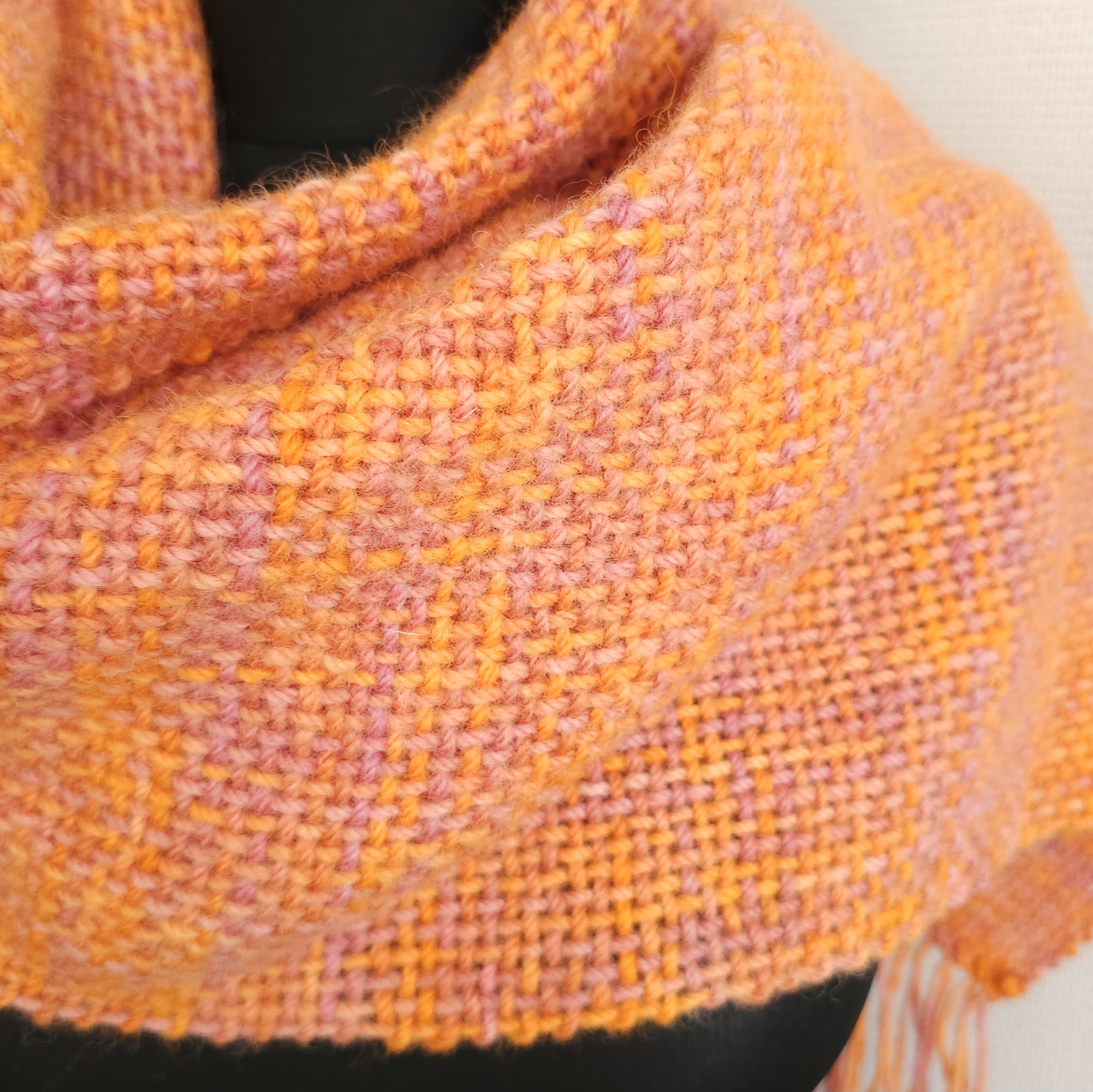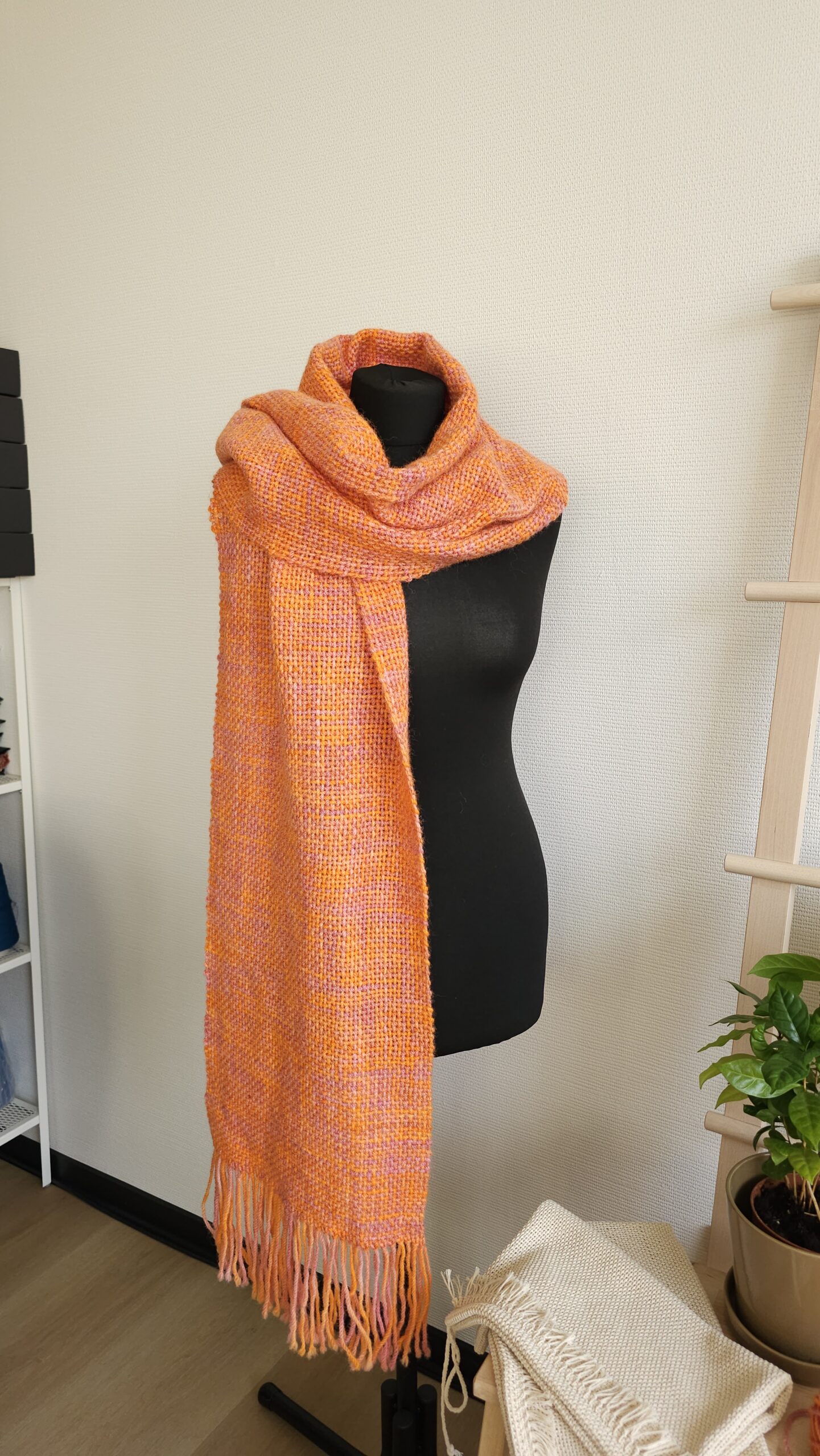 Handwoven scarf made from 100% sheep’s wool, a very warm winter scarf. The wool is hand-dyed, in bright orange and dusty pink colors., size: 188 cm x 30 cm