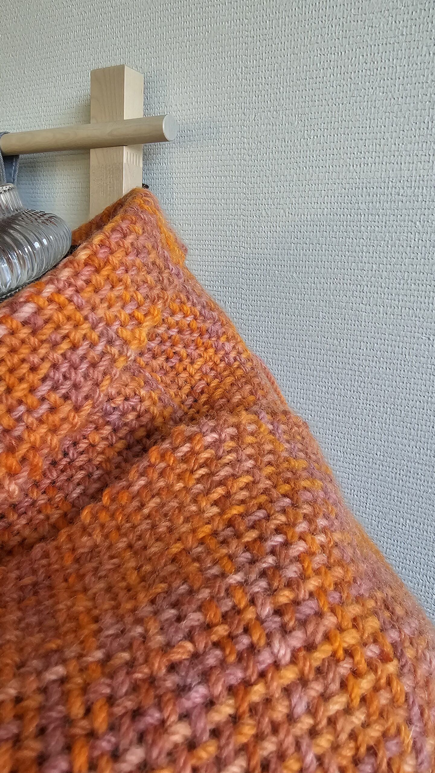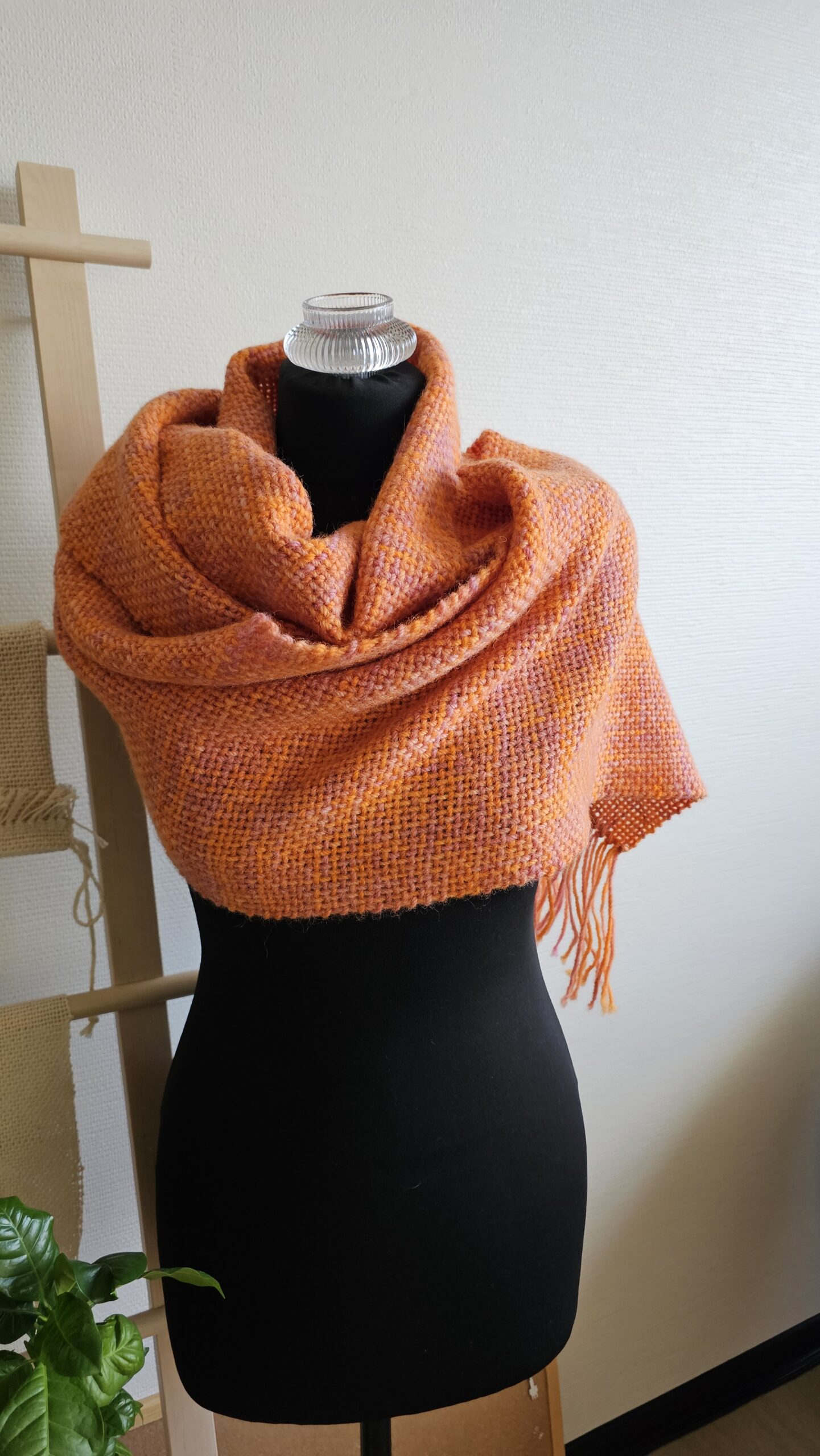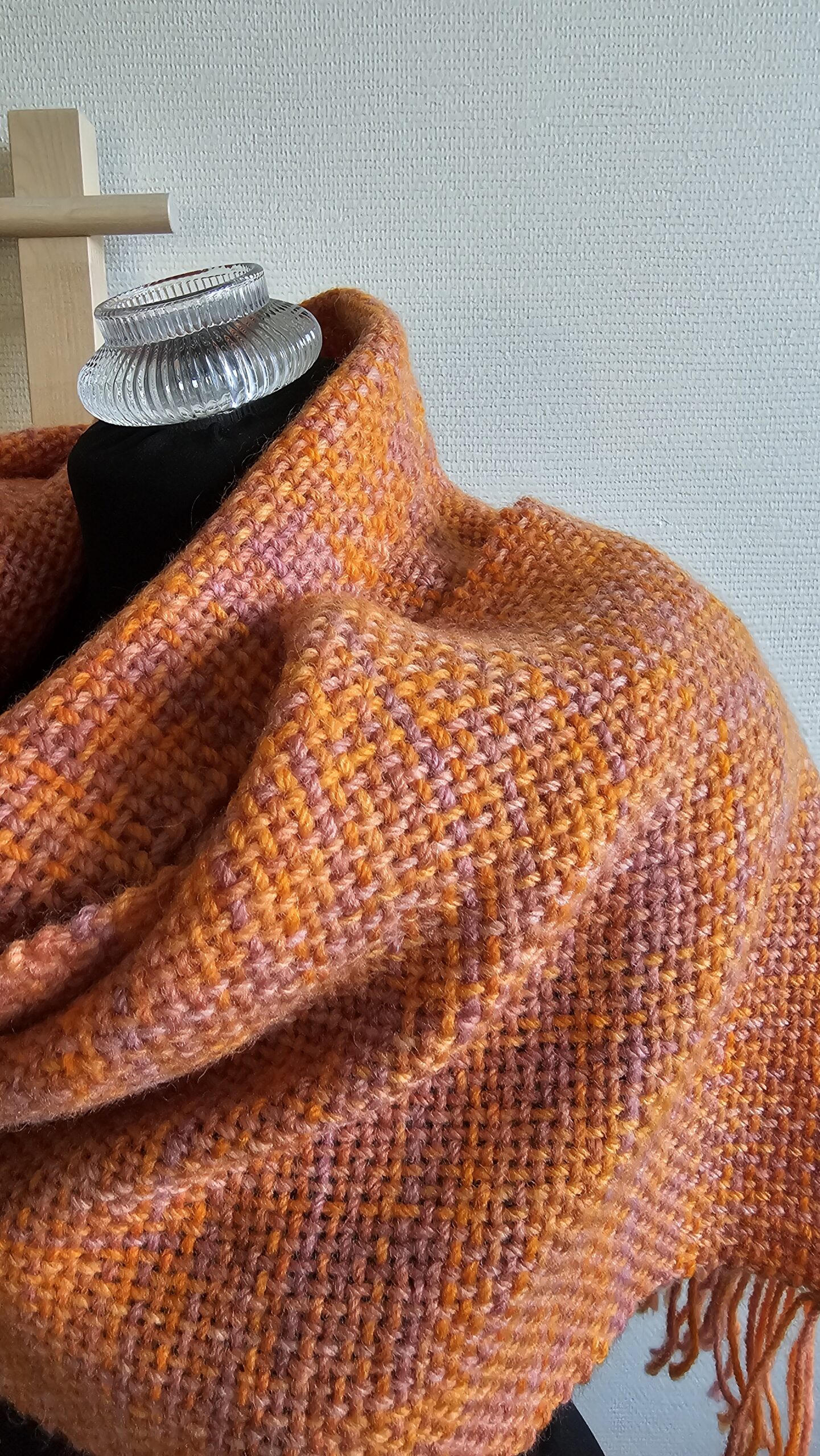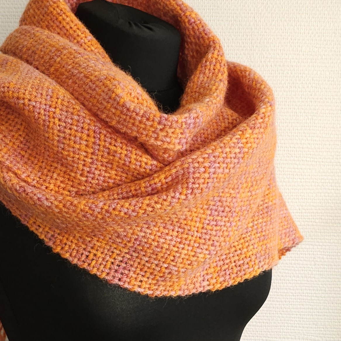 Handwoven scarf made from 100% sheep’s wool, a very warm winter scarf. The wool is hand-dyed, in bright orange and dusty pink colors., size: 188 cm x 30 cm