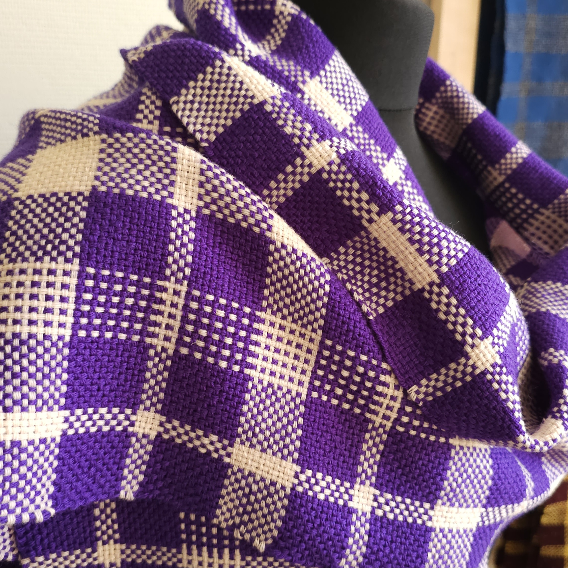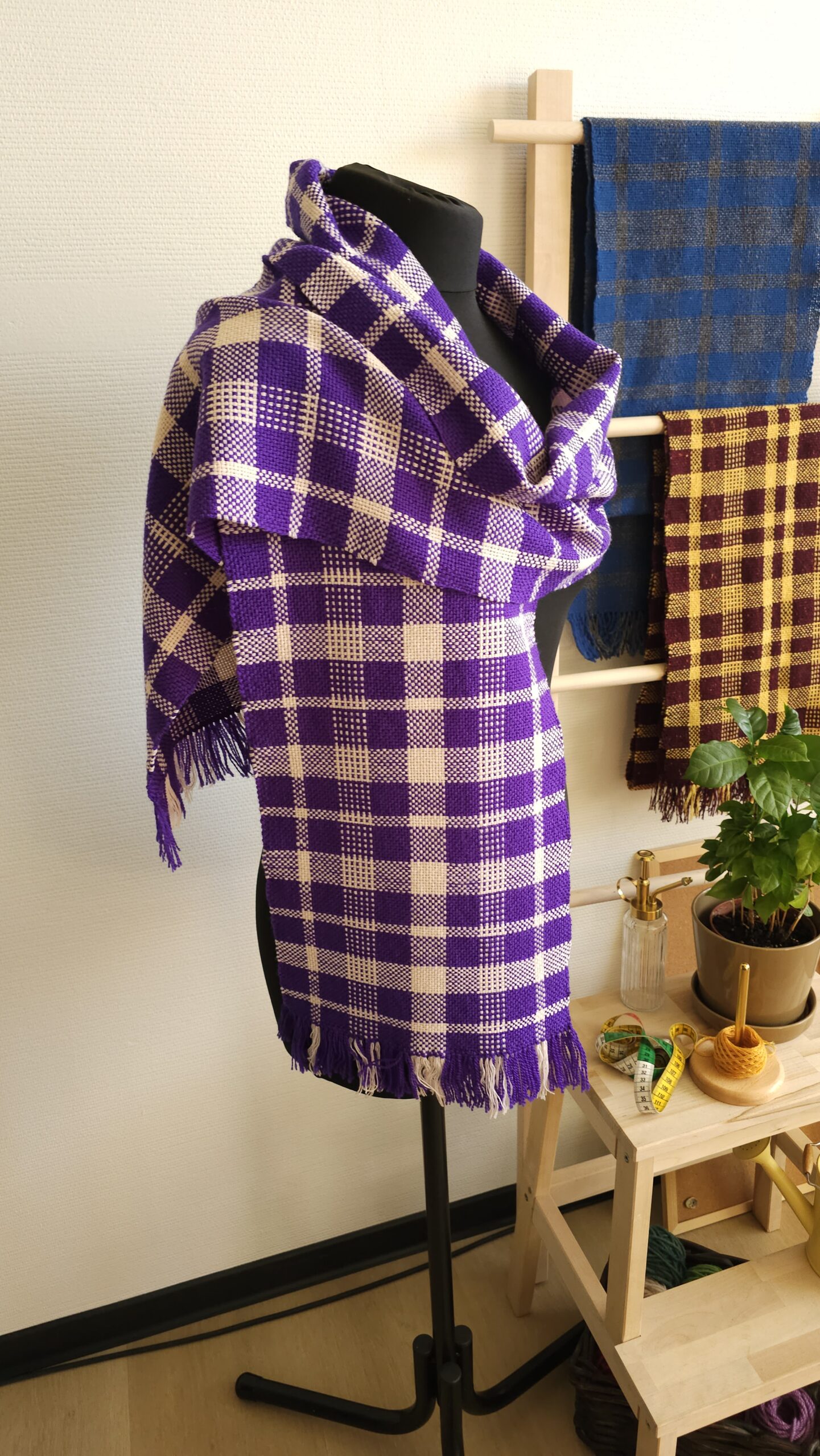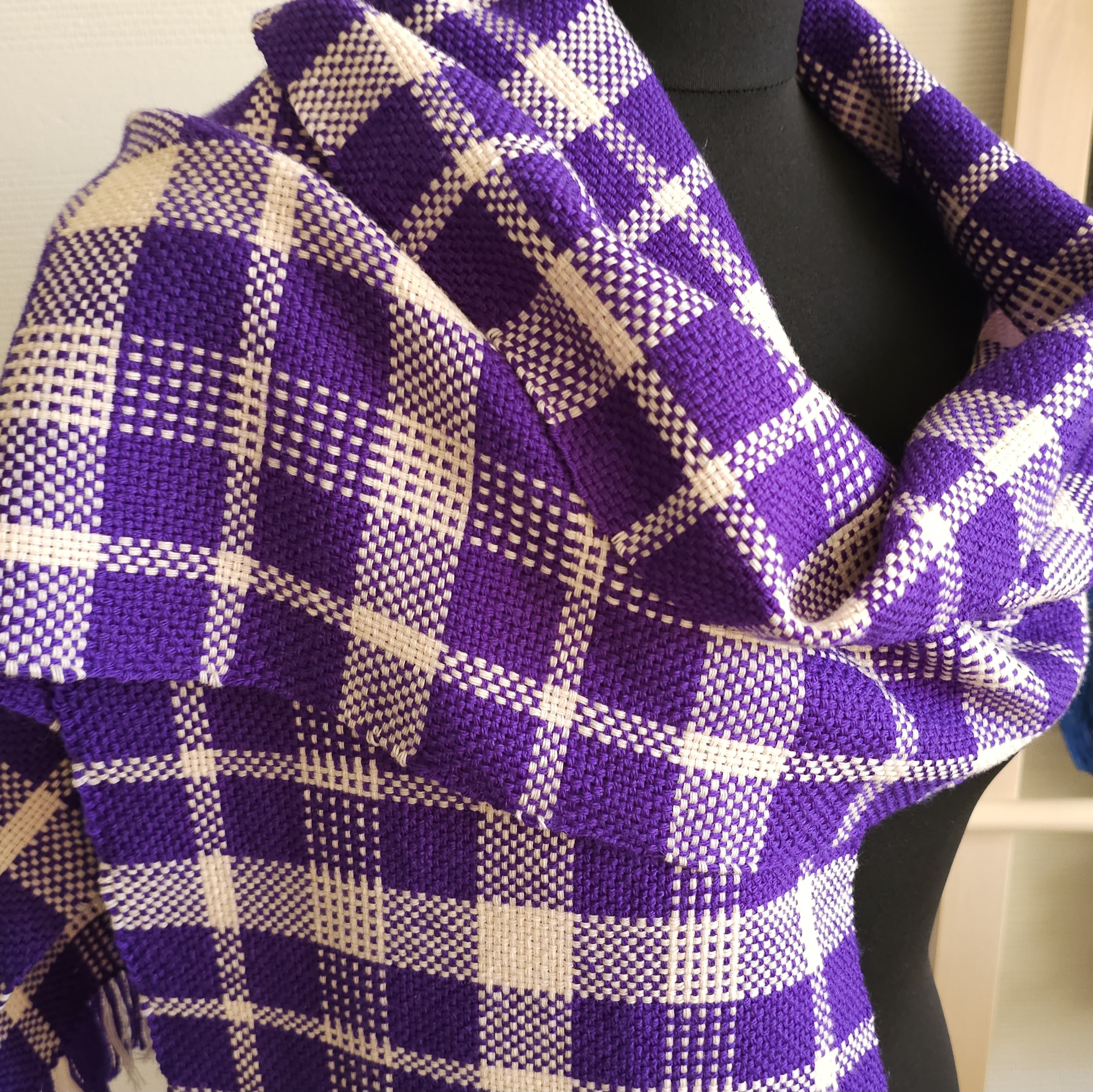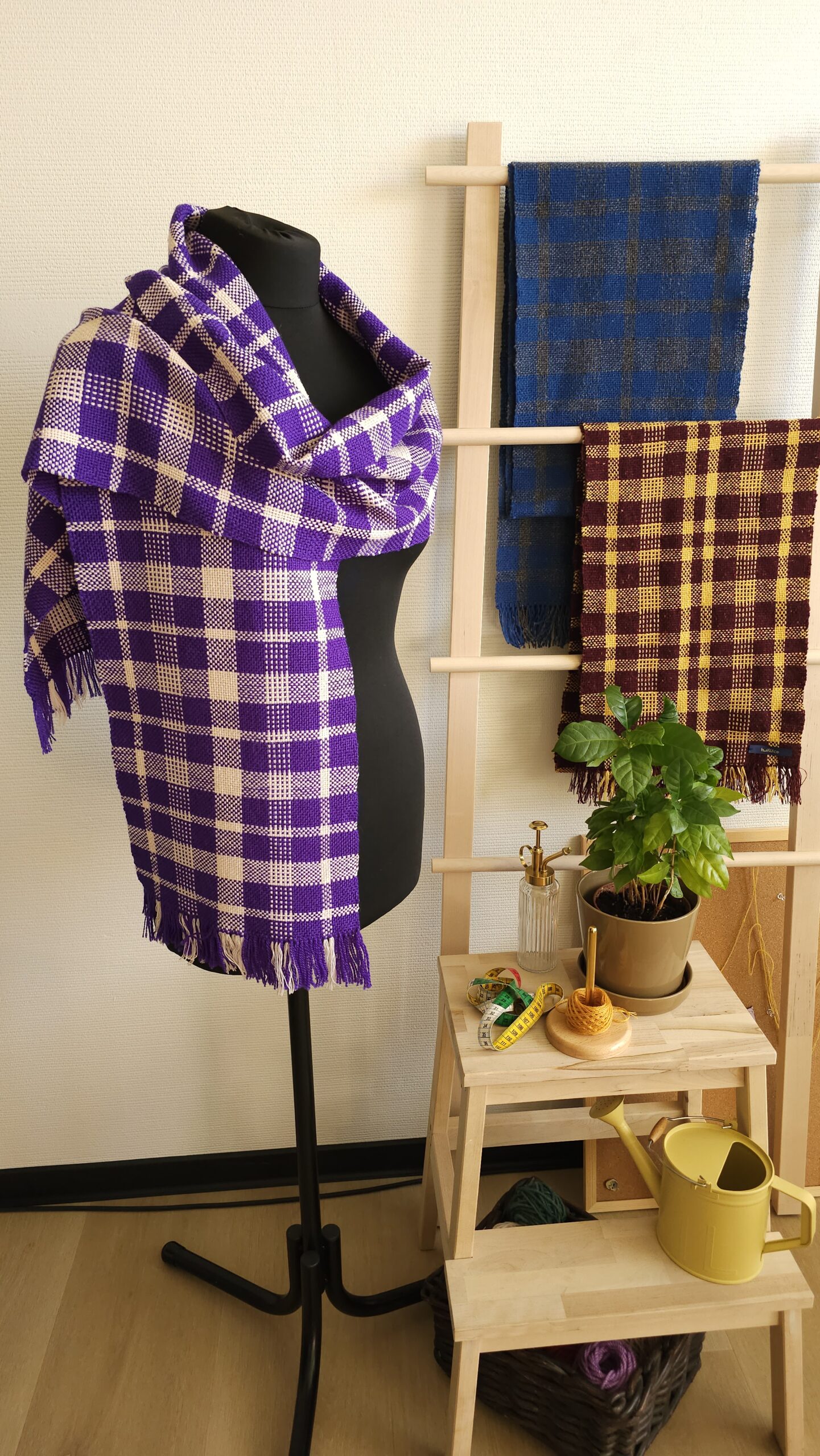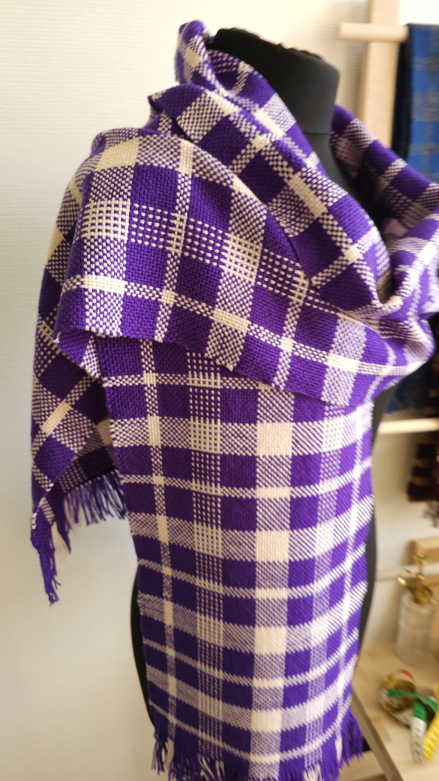 A wonderful Purple white scarf made of high-quality 100% italian merino wool yarn , hand-woven, size: 188 cm x 25 cm