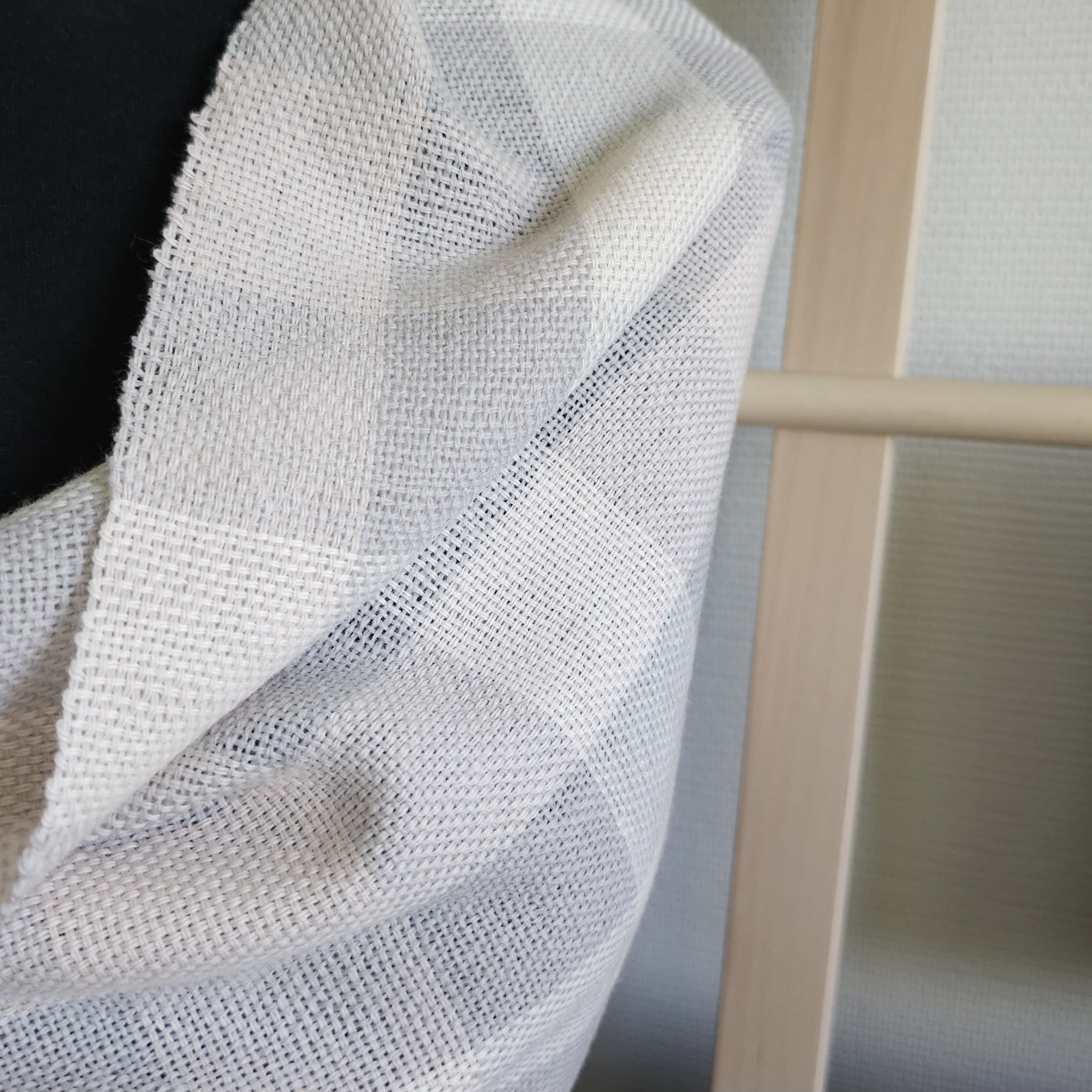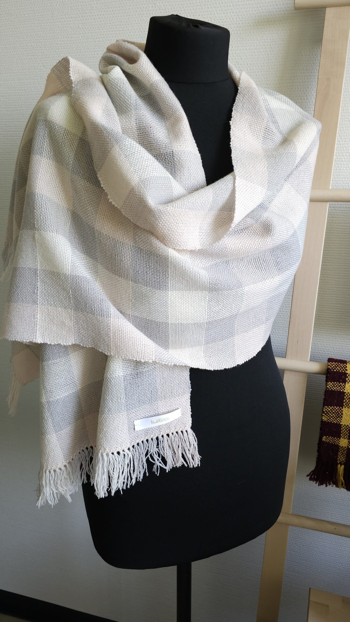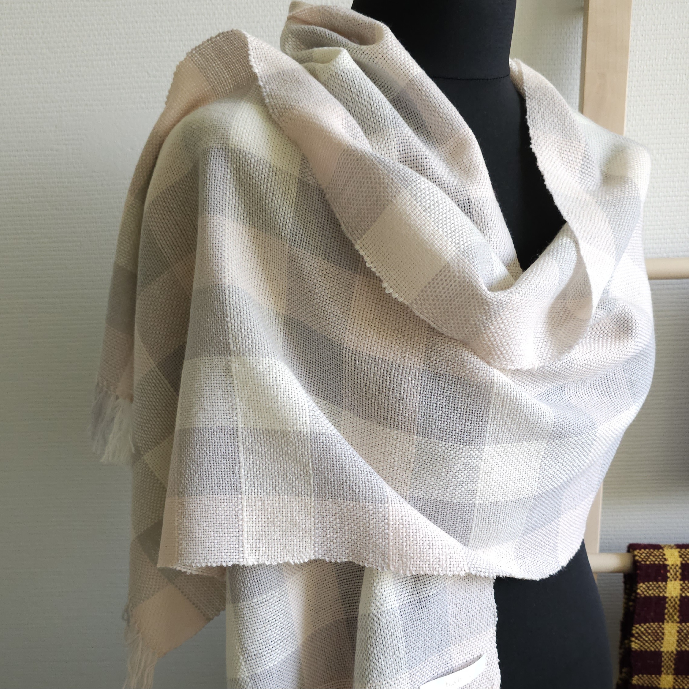 A wonderful white grey light pink shawl made of high-quality 100% italian merino wool yarn , hand-woven, size: 164 cm x 37 cm