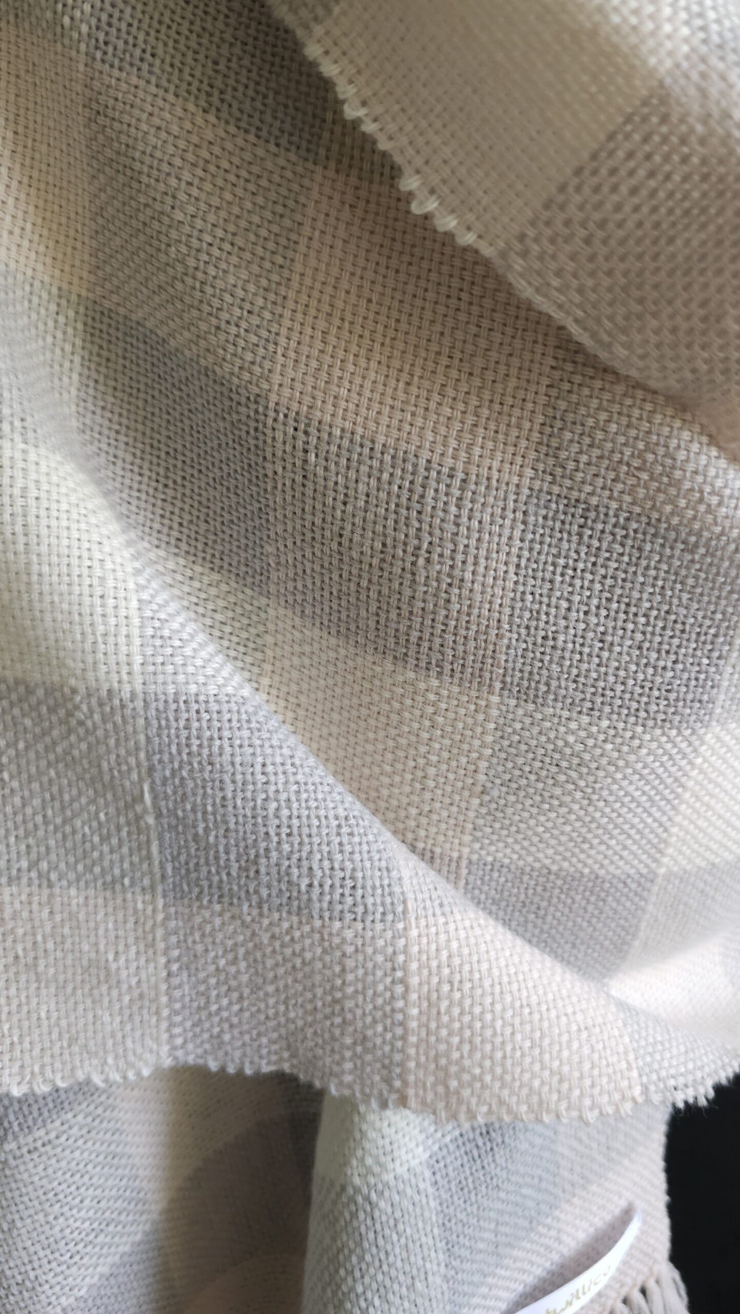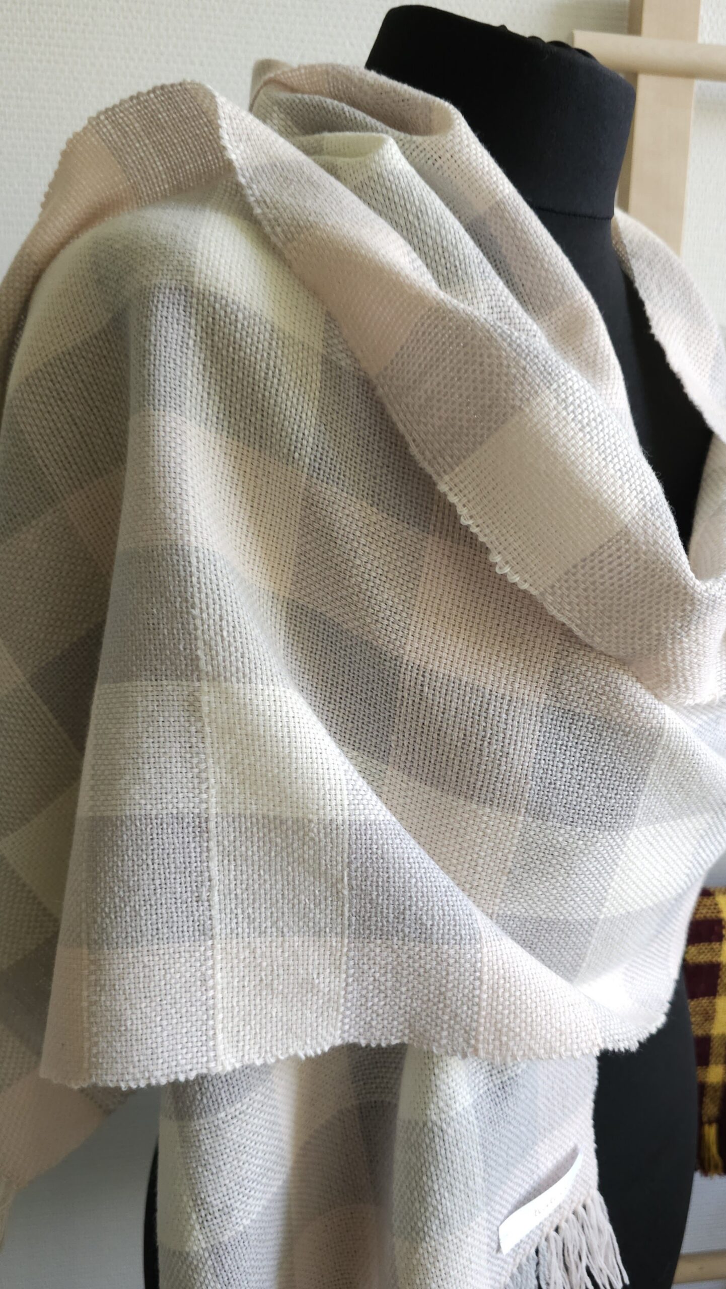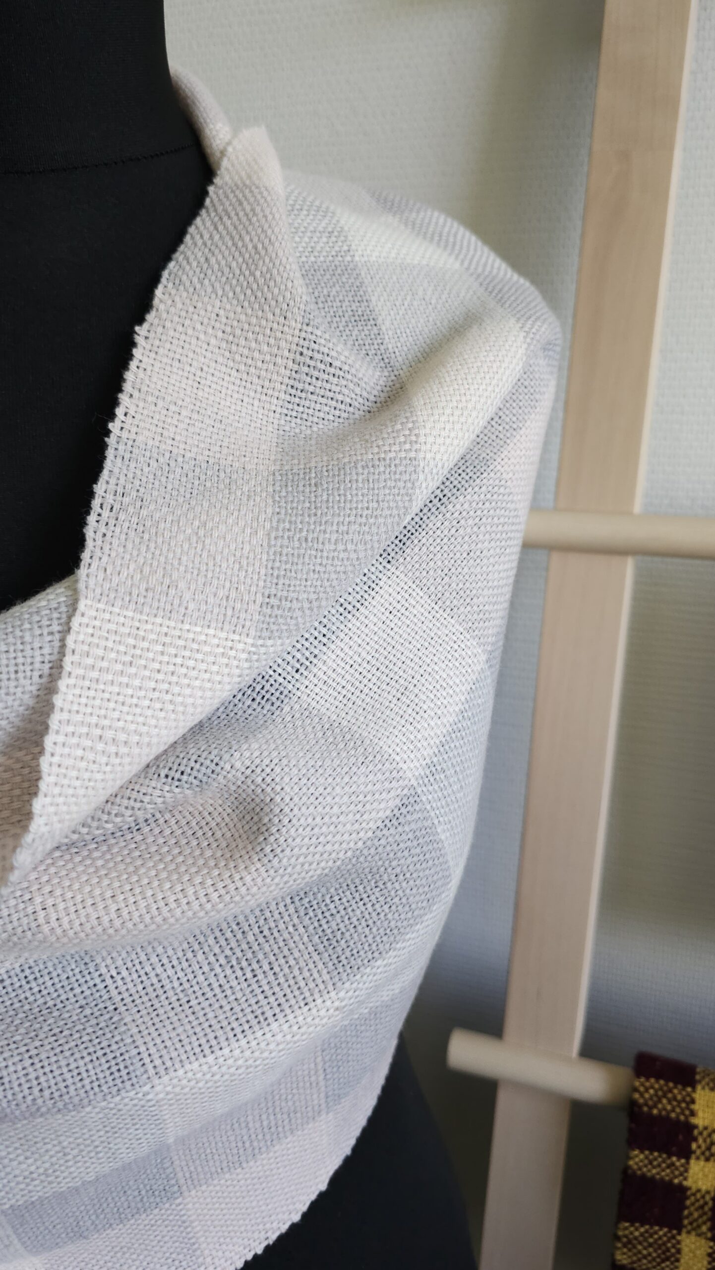 A wonderful white grey light pink shawl made of high-quality 100% italian merino wool yarn , hand-woven, size: 164 cm x 37 cm
